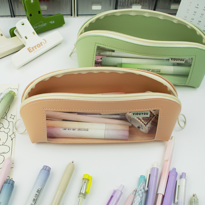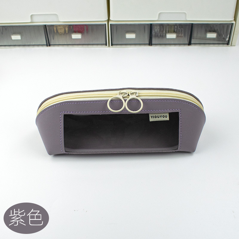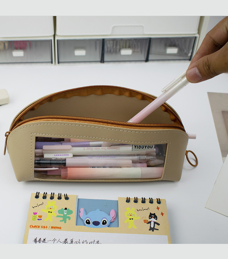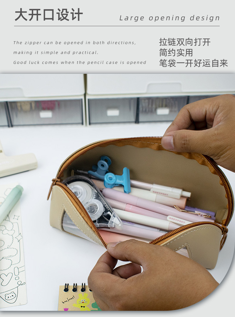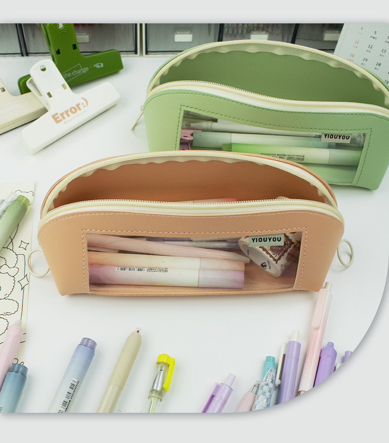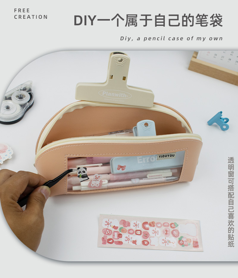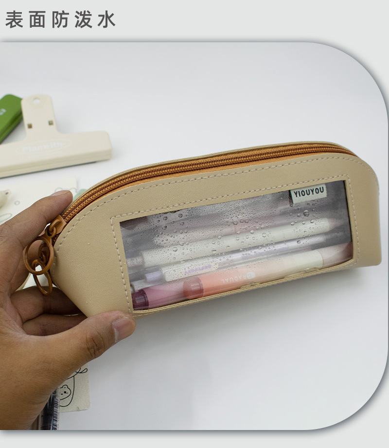 贝壳笔袋包加厚水洗PU皮革环保便携式文具笔收纳袋学生透明铅笔袋