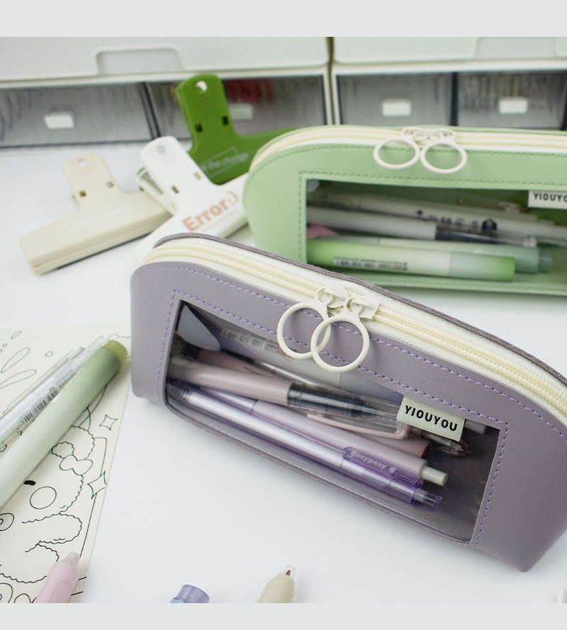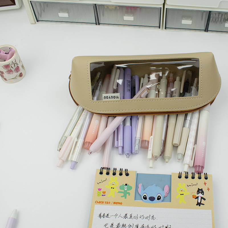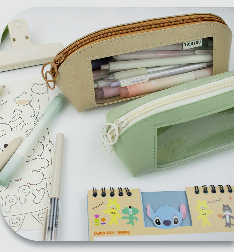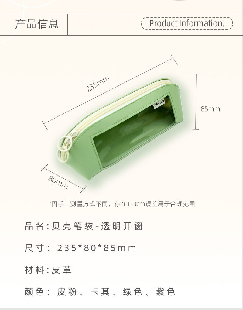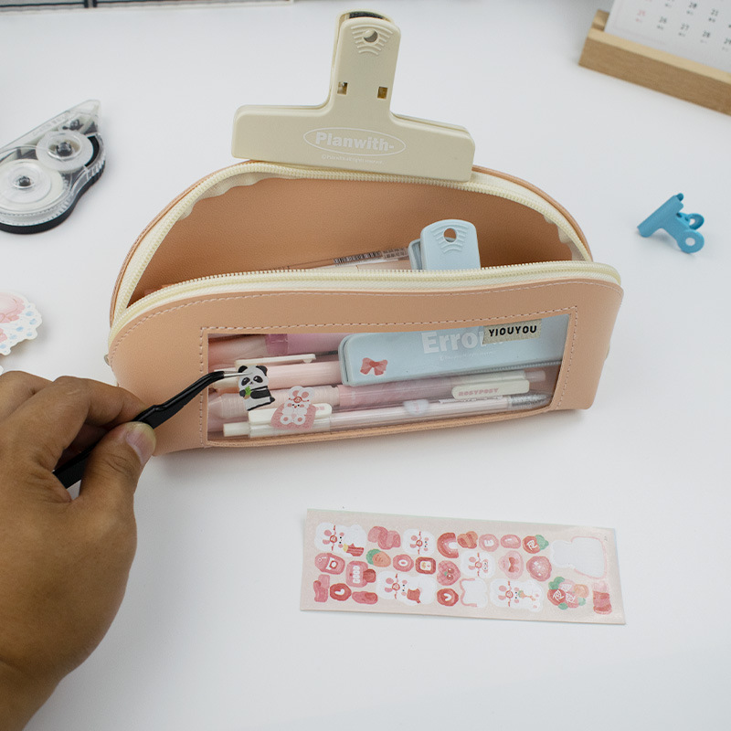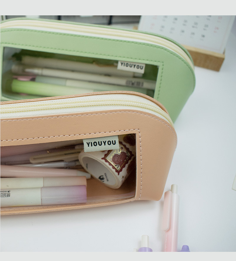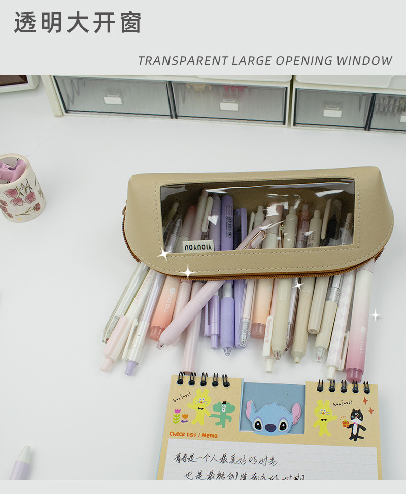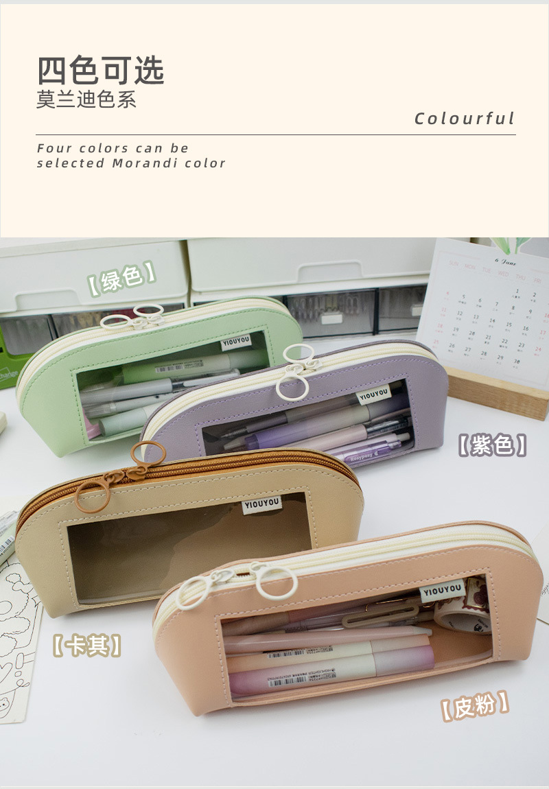 贝壳笔袋包加厚水洗PU皮革环保便携式文具笔收纳袋学生透明铅笔袋