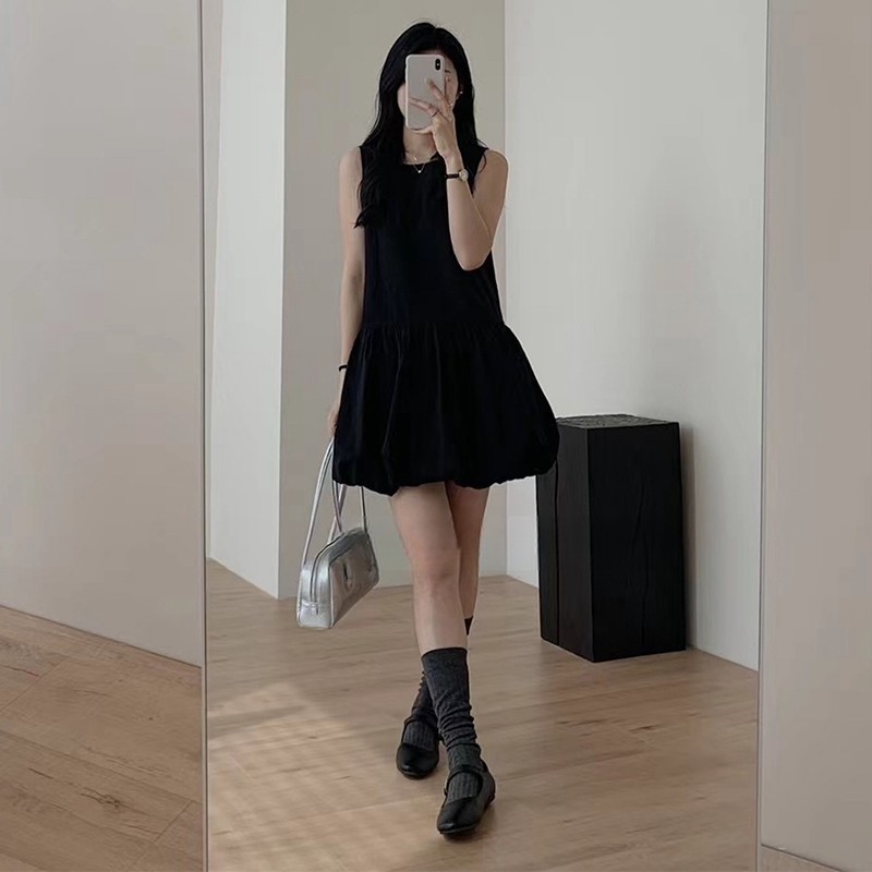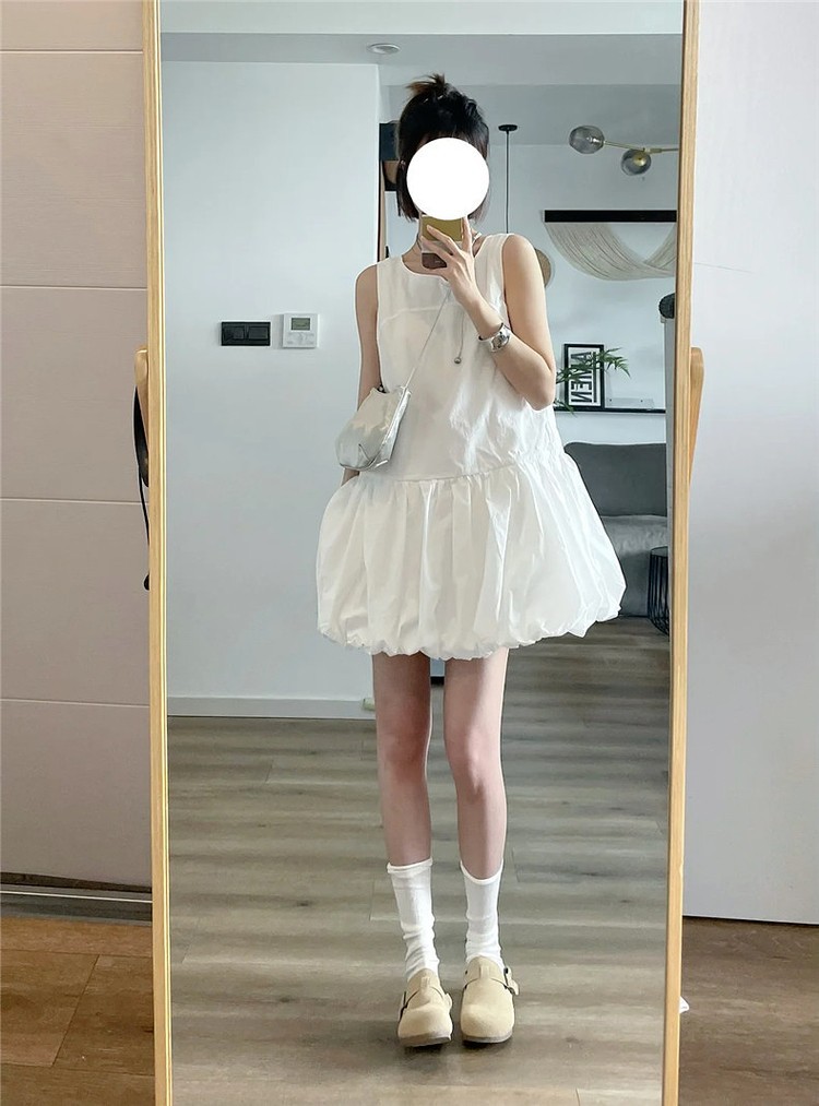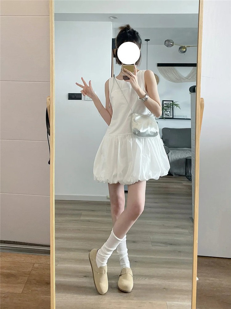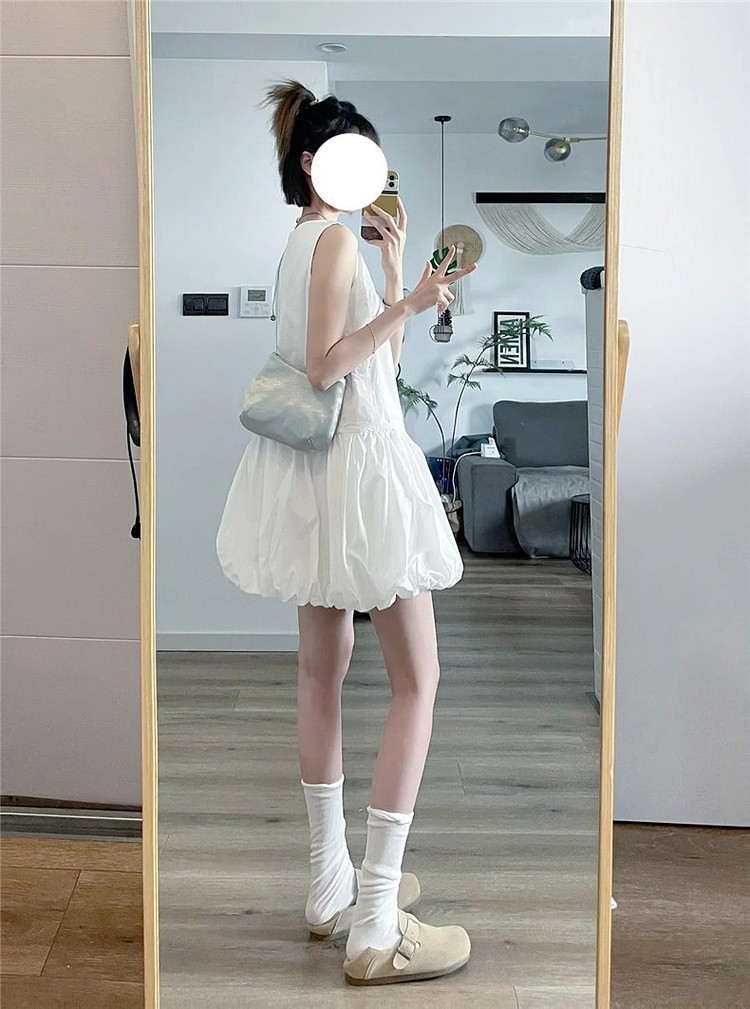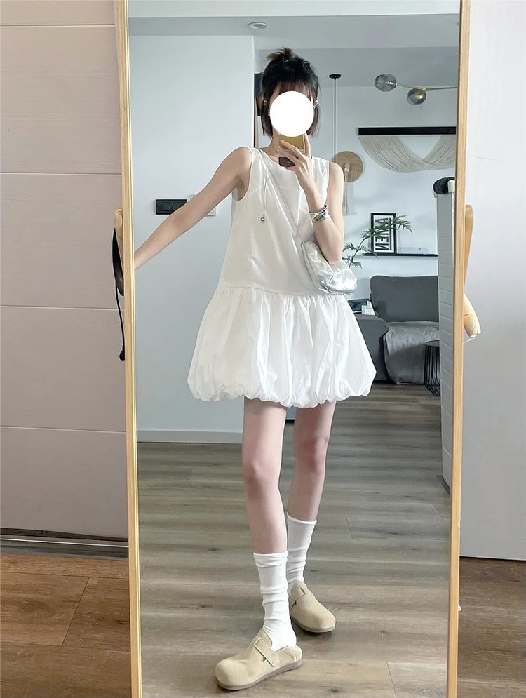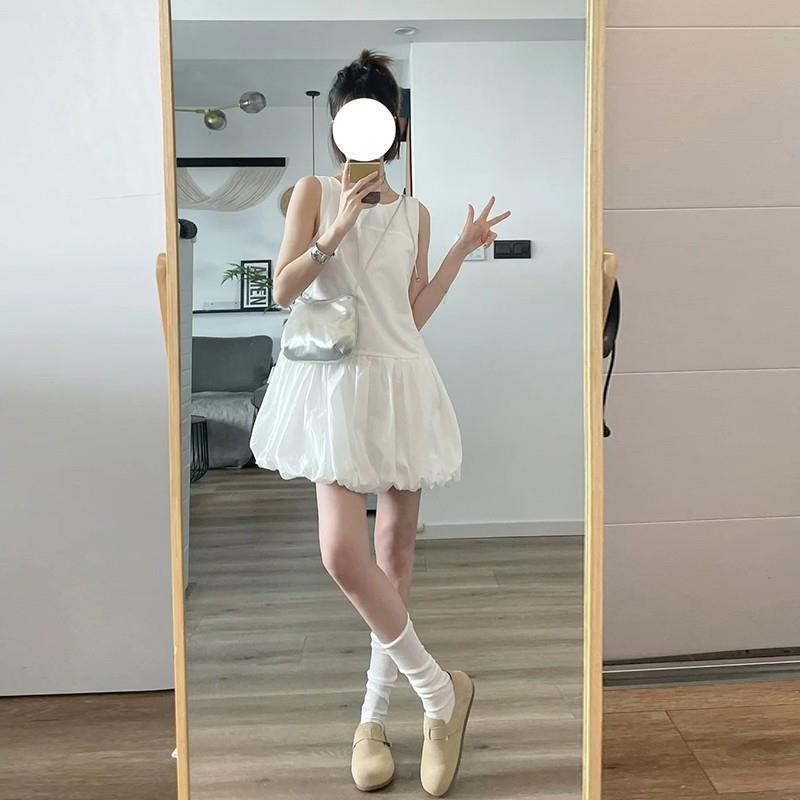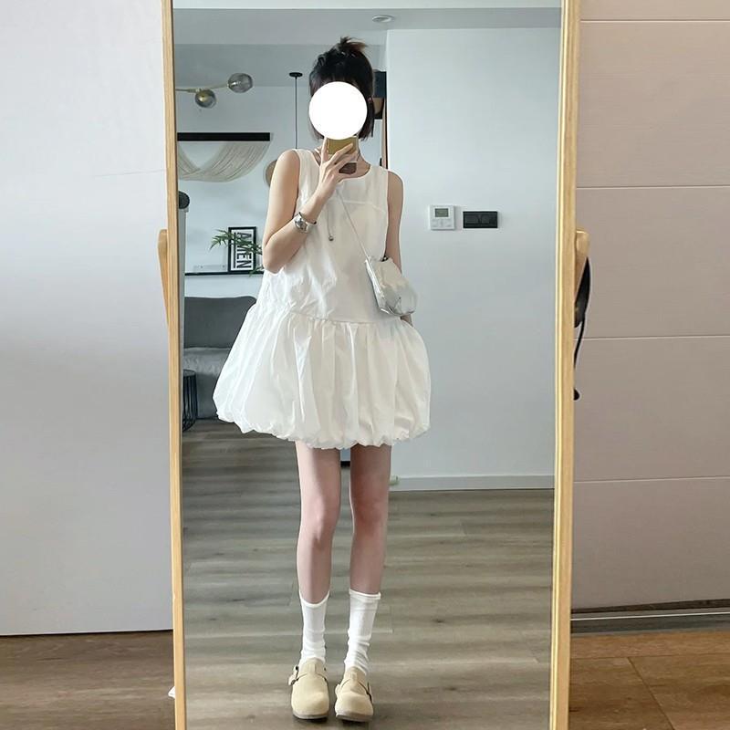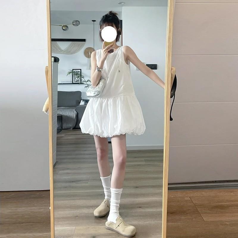 韩系白色无袖背心连衣裙女夏季温柔风气质裙子小个子宽松花苞短裙