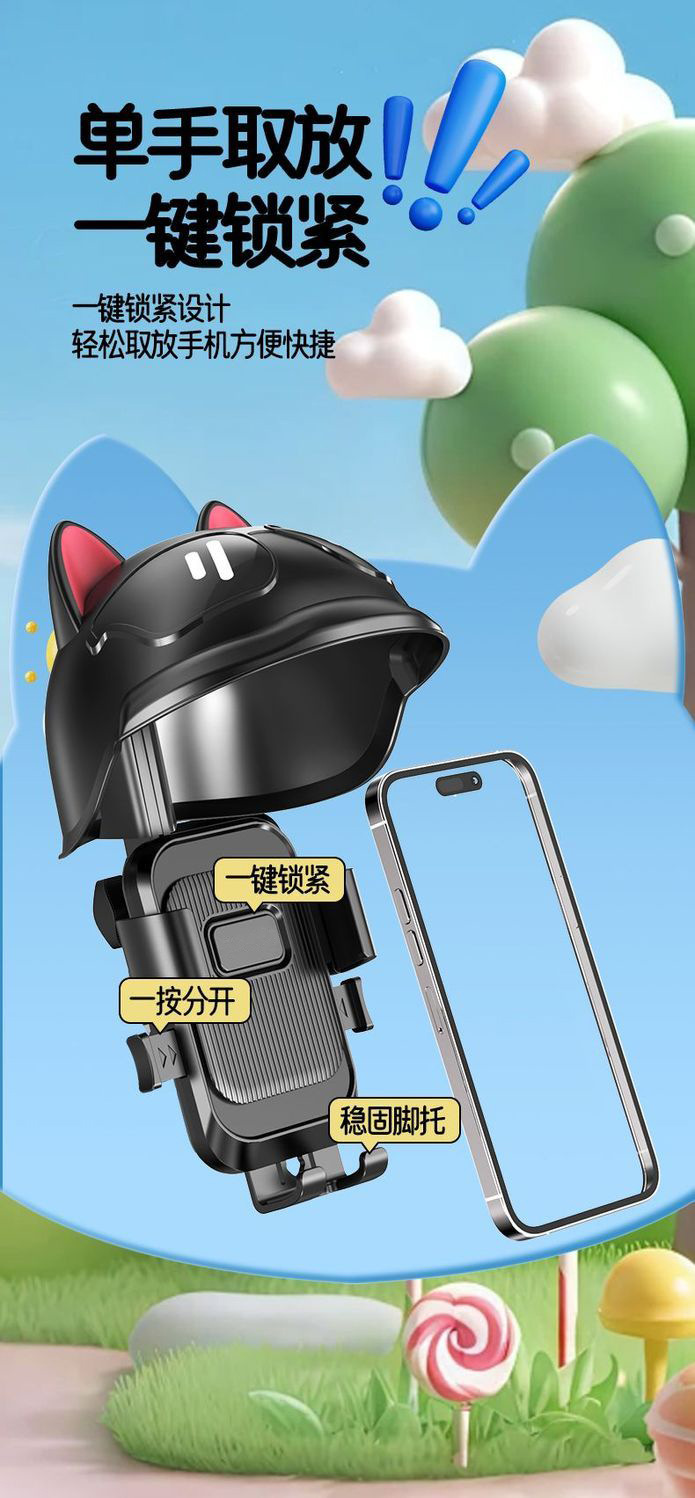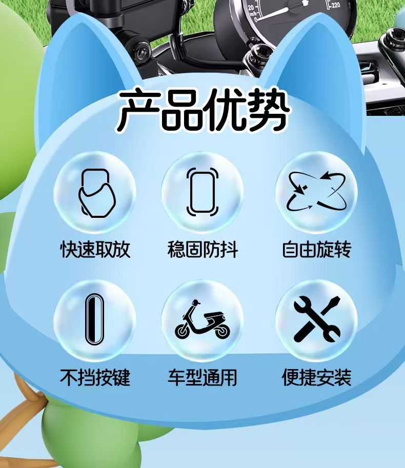 电动电瓶车手机架可爱导航支架防震外卖骑手自行车手机机支架防雨