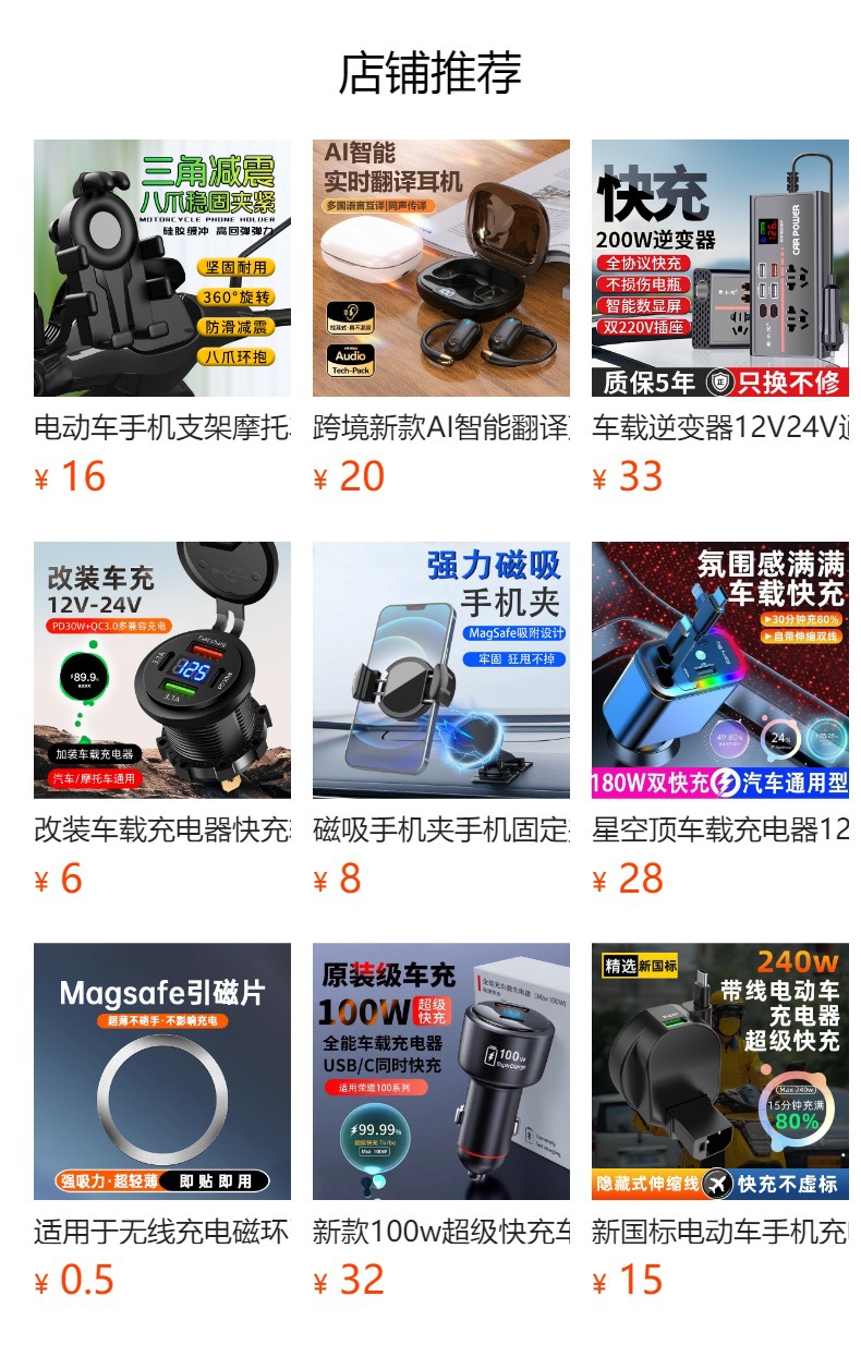 2、本店拥有车充、车载支架、车载停车牌、车载支架等产品