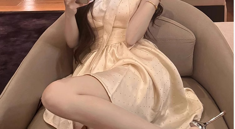 夏新款甜美胖mm法式纯欲辣妹无袖连衣裙富家千金收腰显瘦a字短裙