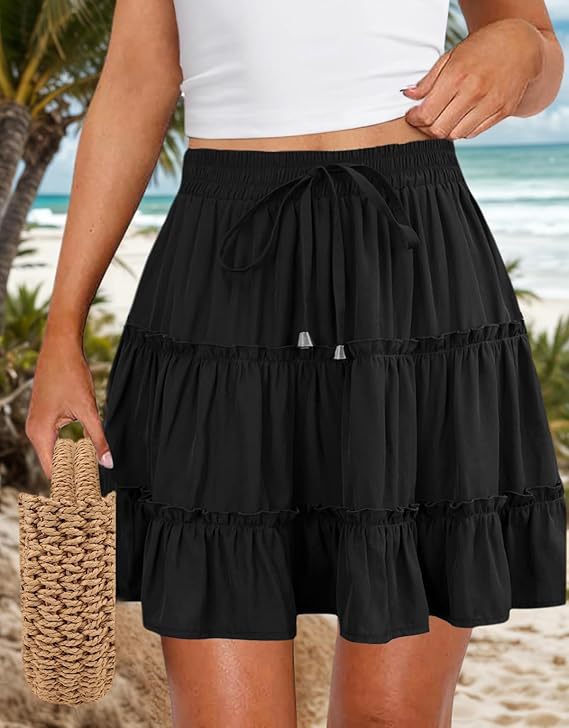 2023夏季亚马逊欧美女装高腰荷叶边碎花半身裙A字短裙女跨境Temu