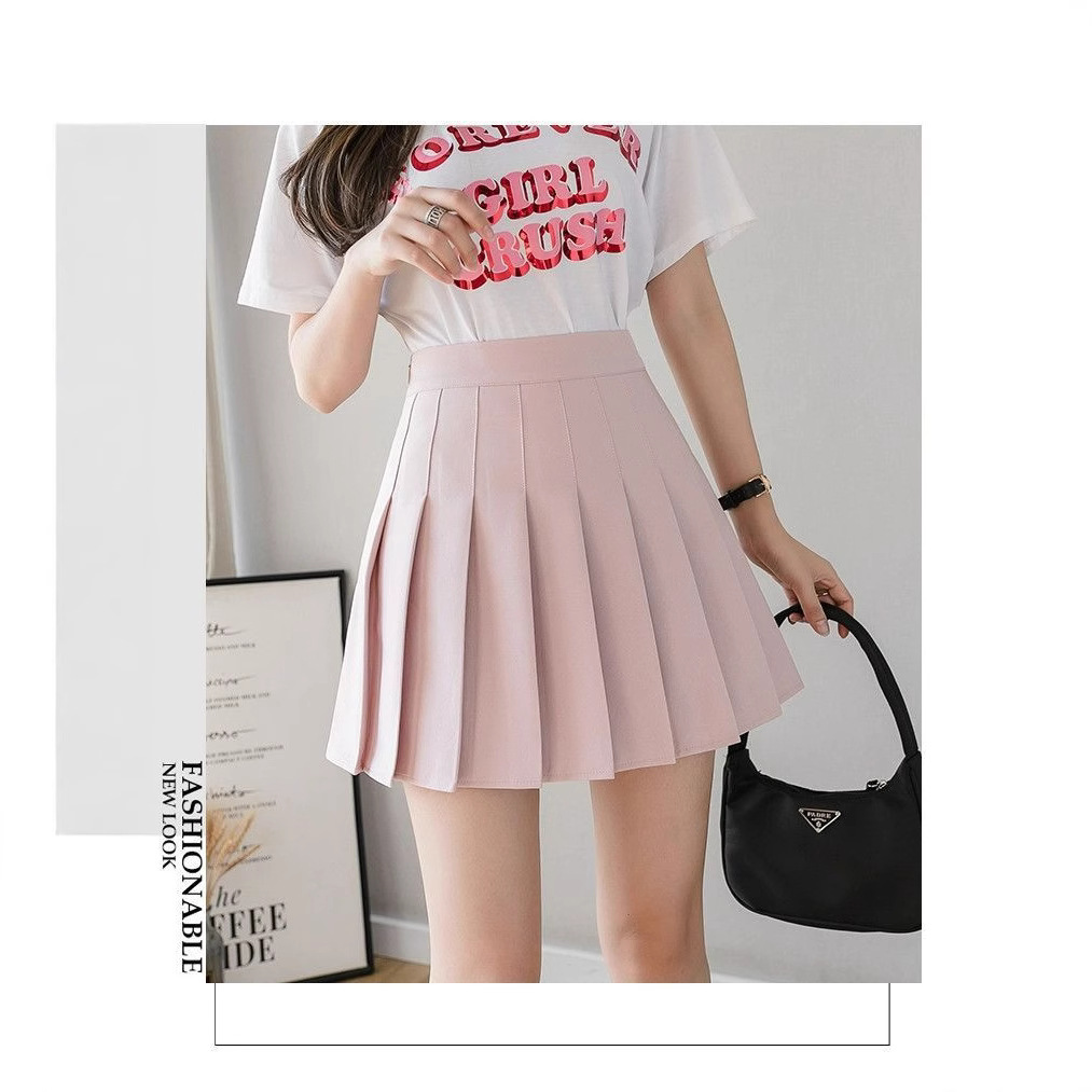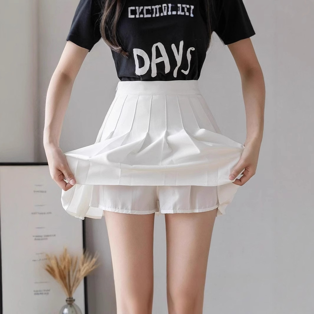 夏季白色半身裙显瘦遮胯a字裙高腰显瘦百褶裙辣妹短裙女学院风潮