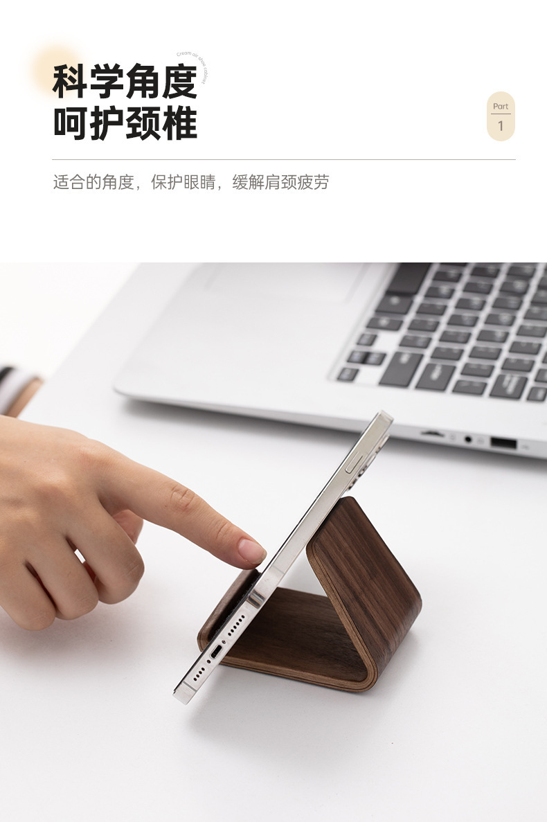 胡桃木实木创意手机支架桌面支撑手机置物架办公室简约手机支架