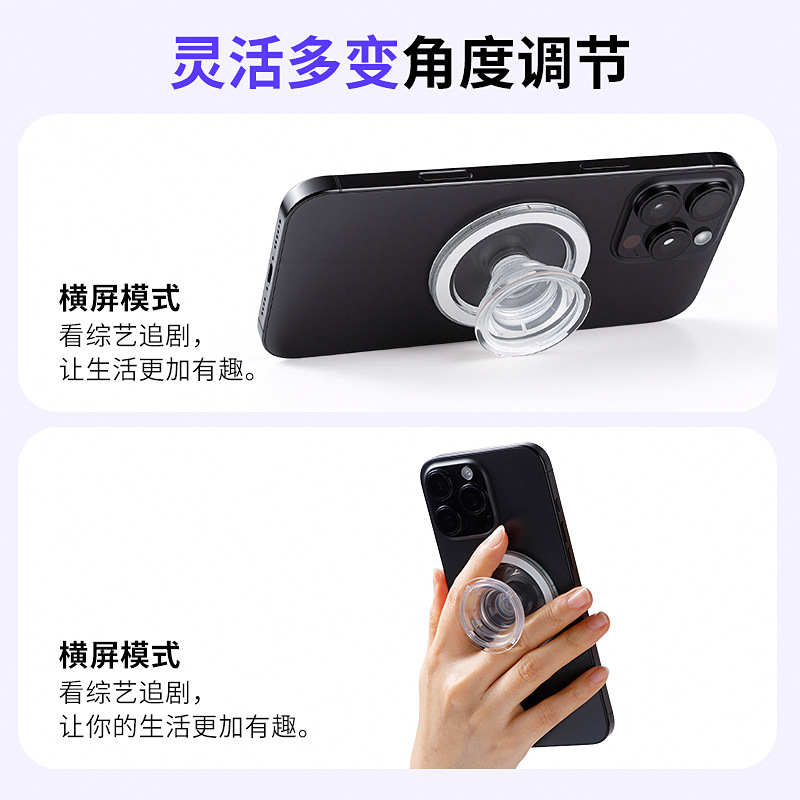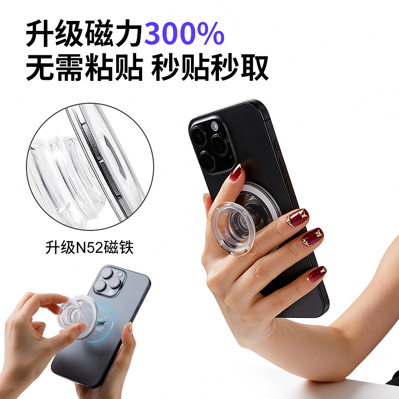 高品质无棱Magsafe手机磁吸气囊支架POP透明气囊支架拆卸磁吸支架