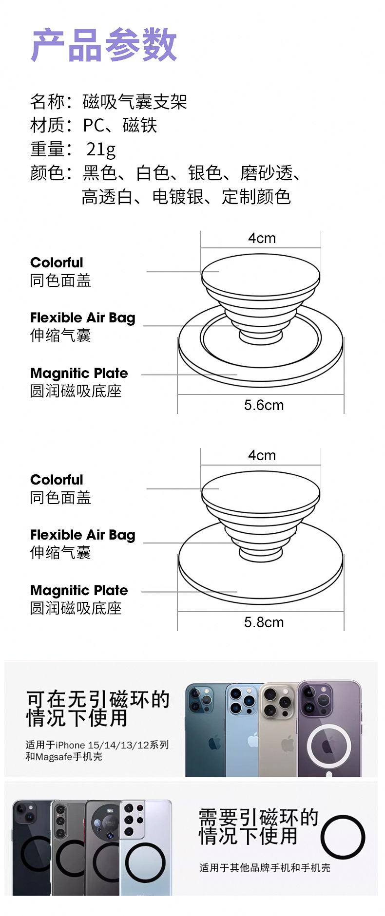【产品名称】MagSafe磁吸气囊支架;