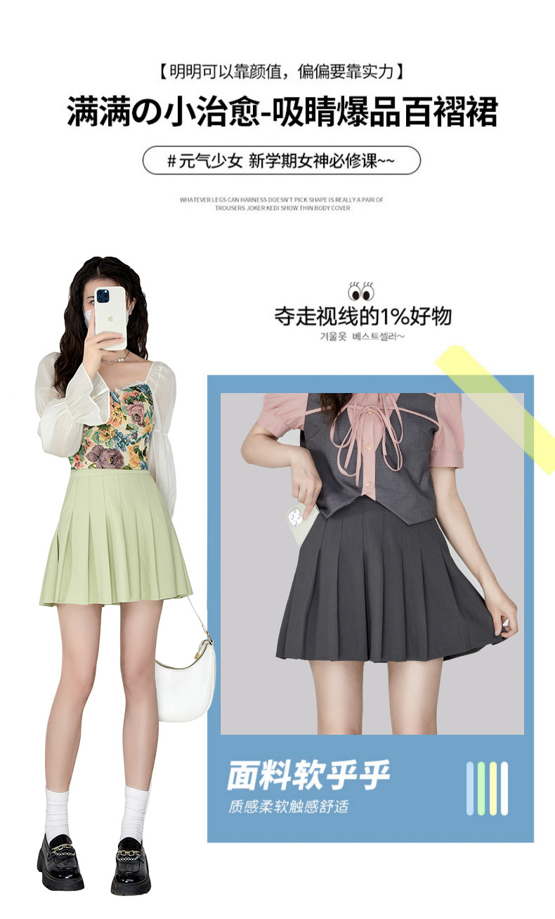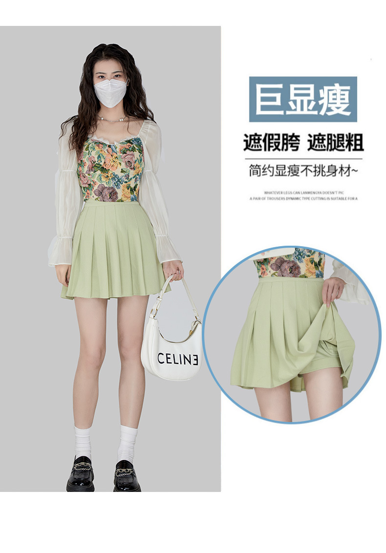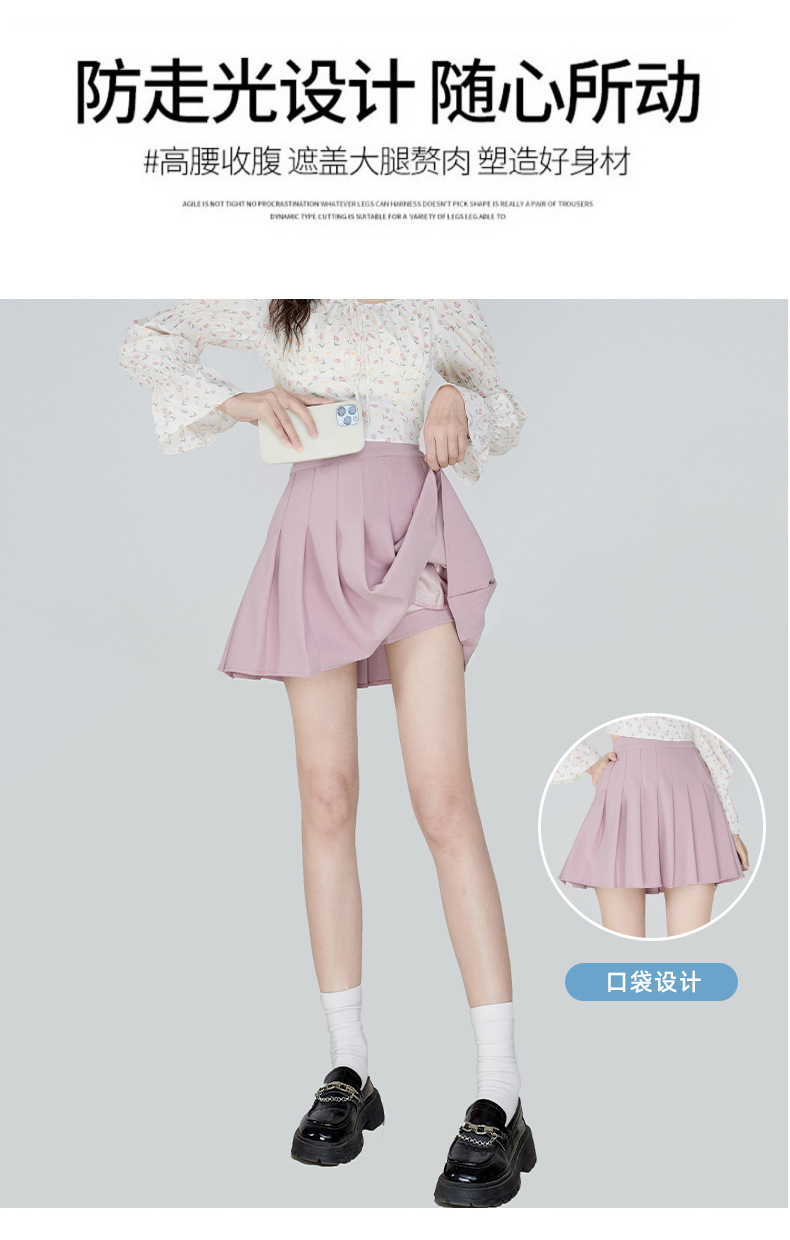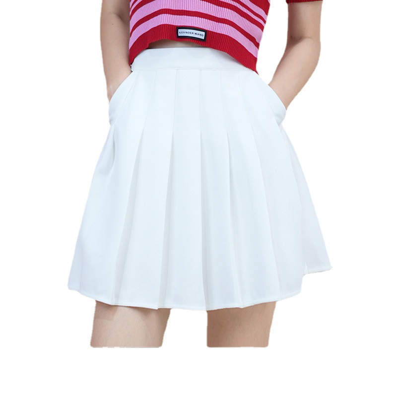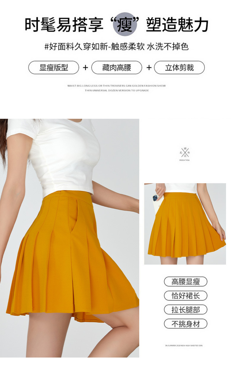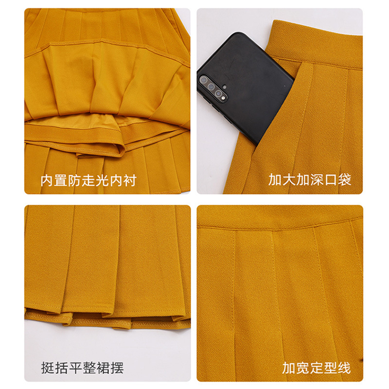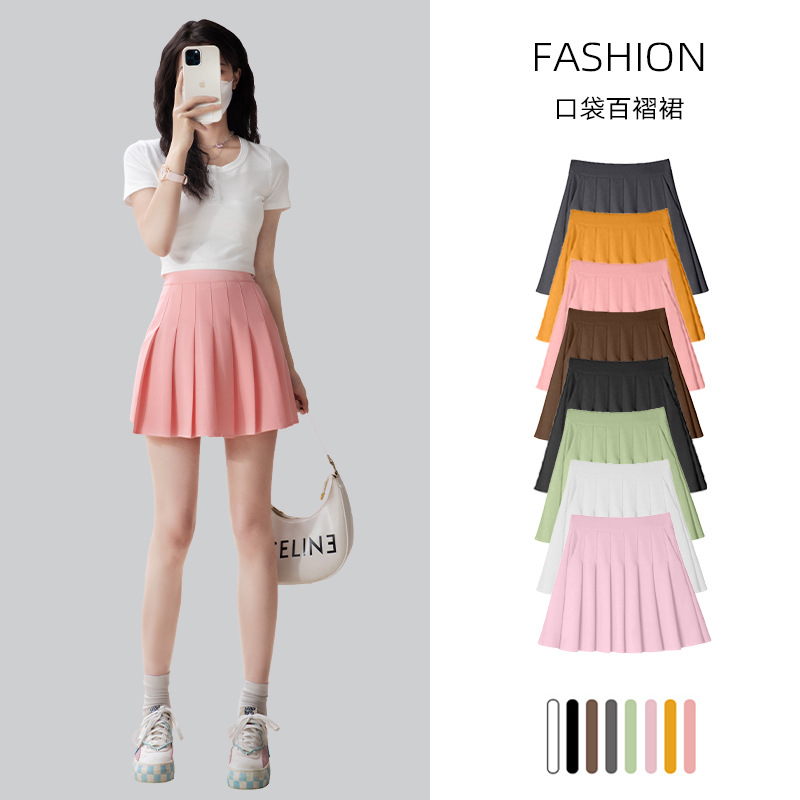 带口袋百褶裙女春夏新款a字弹力高腰短裙防走光半身裙运动半裙