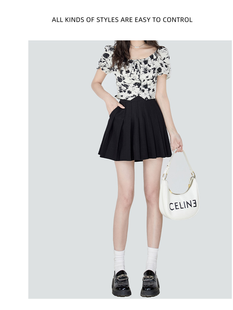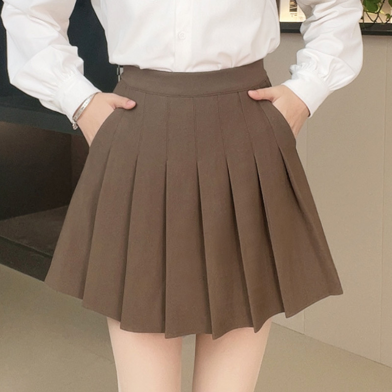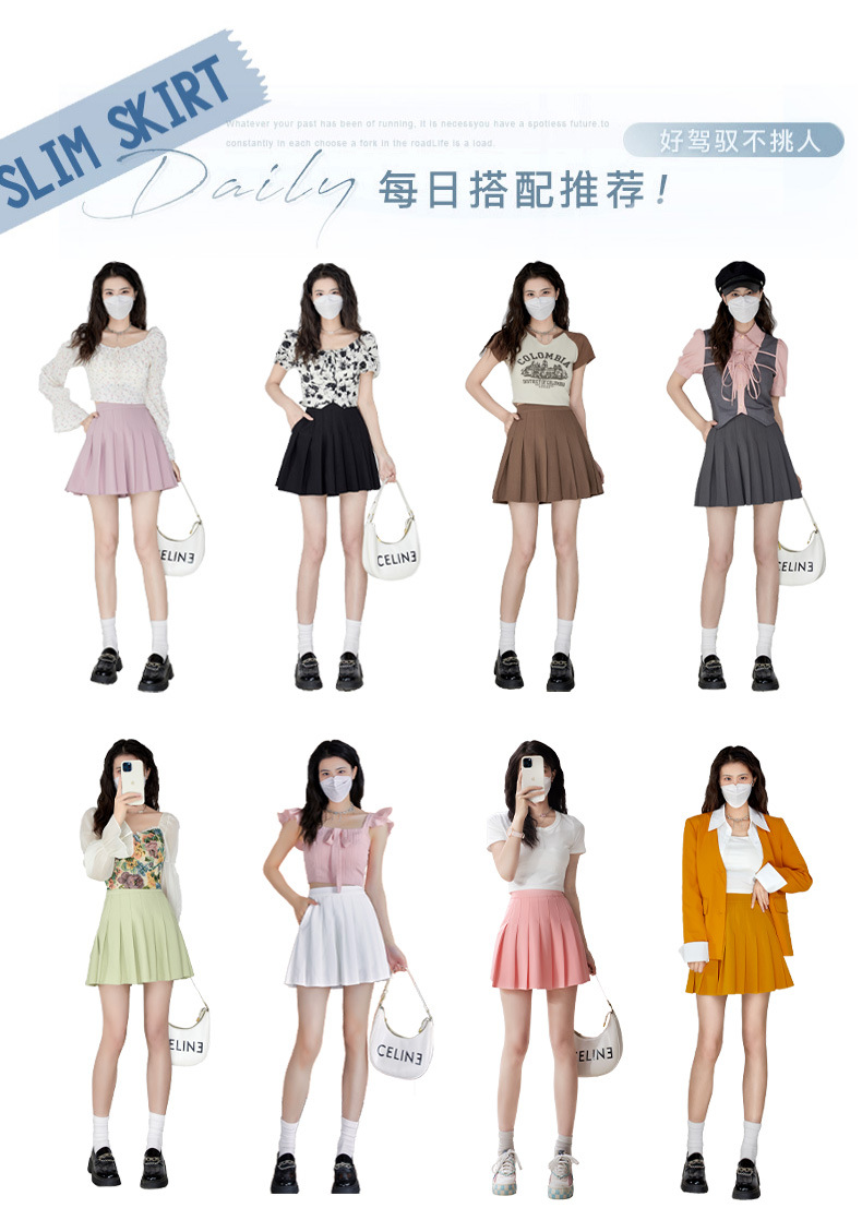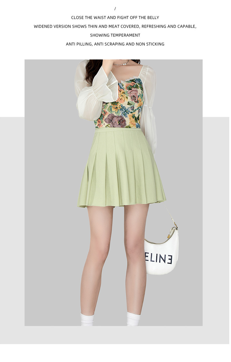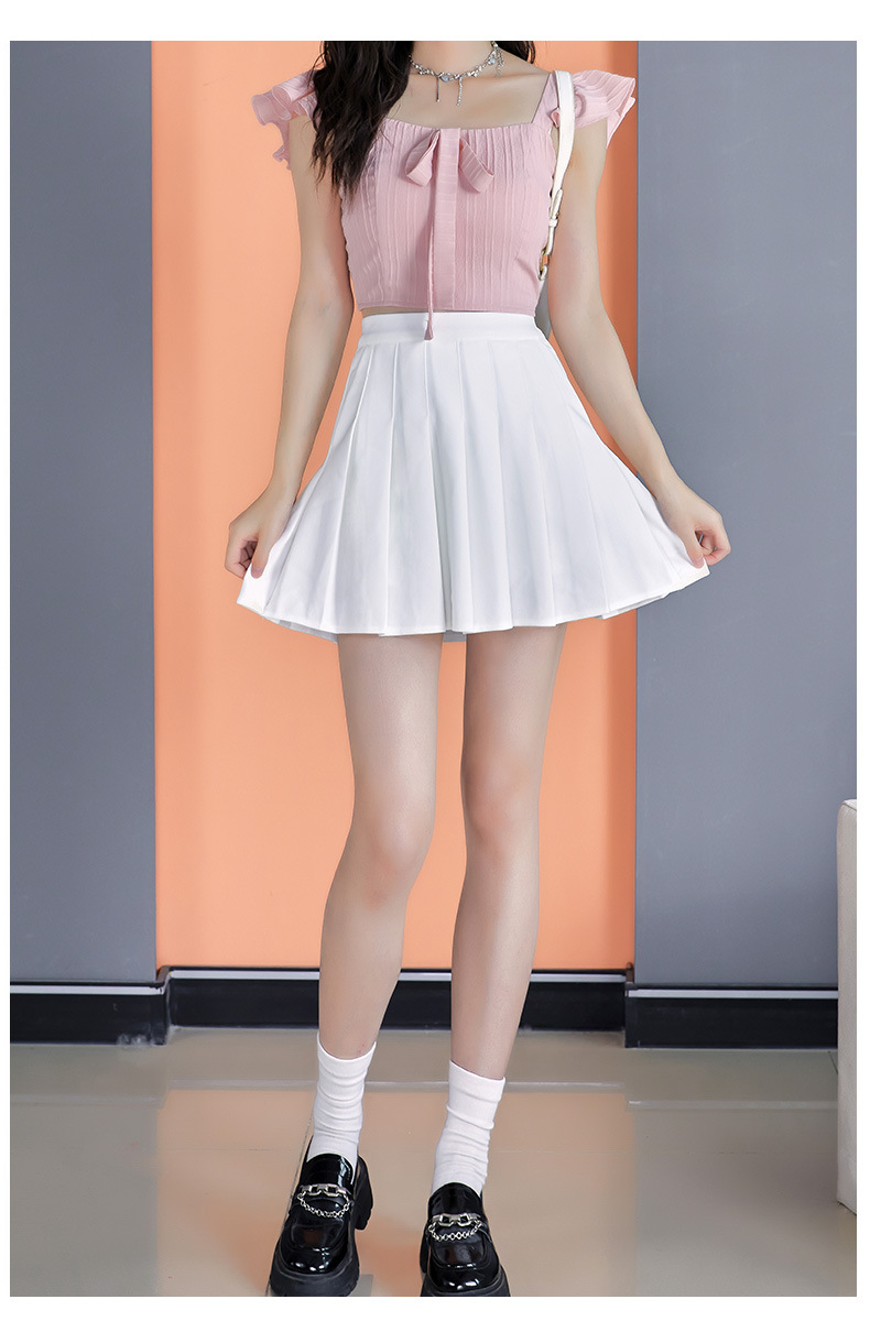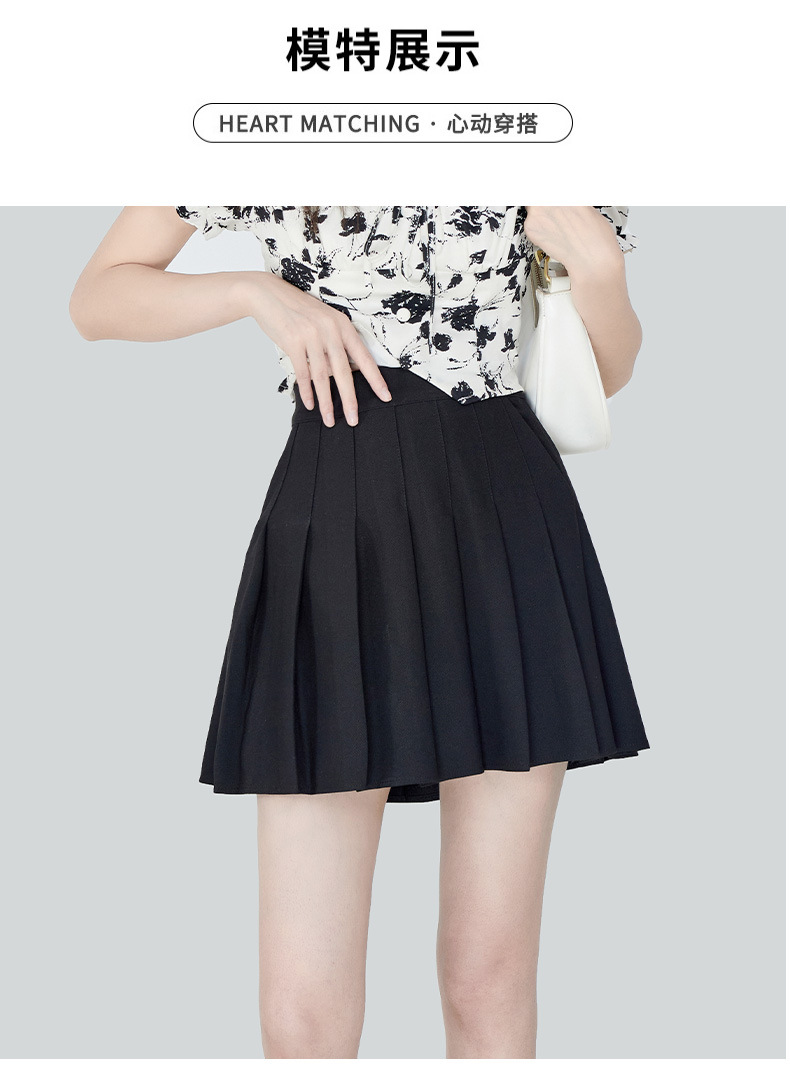 带口袋百褶裙女春夏新款a字弹力高腰短裙防走光半身裙运动半裙