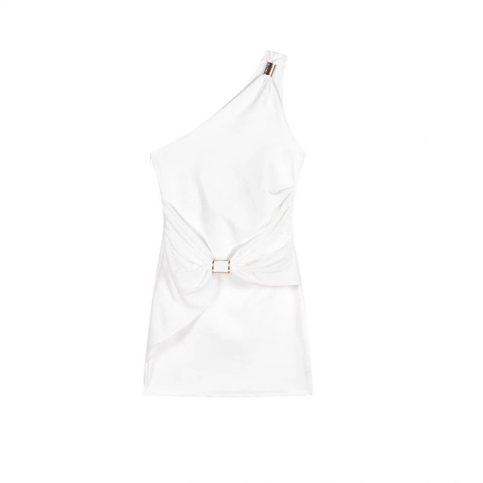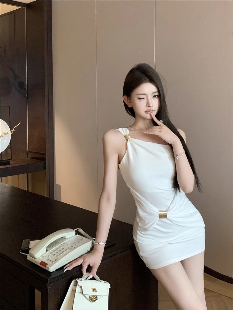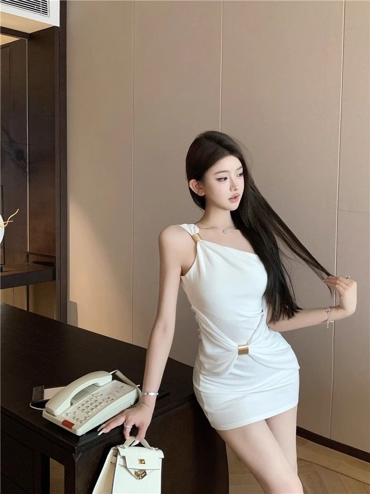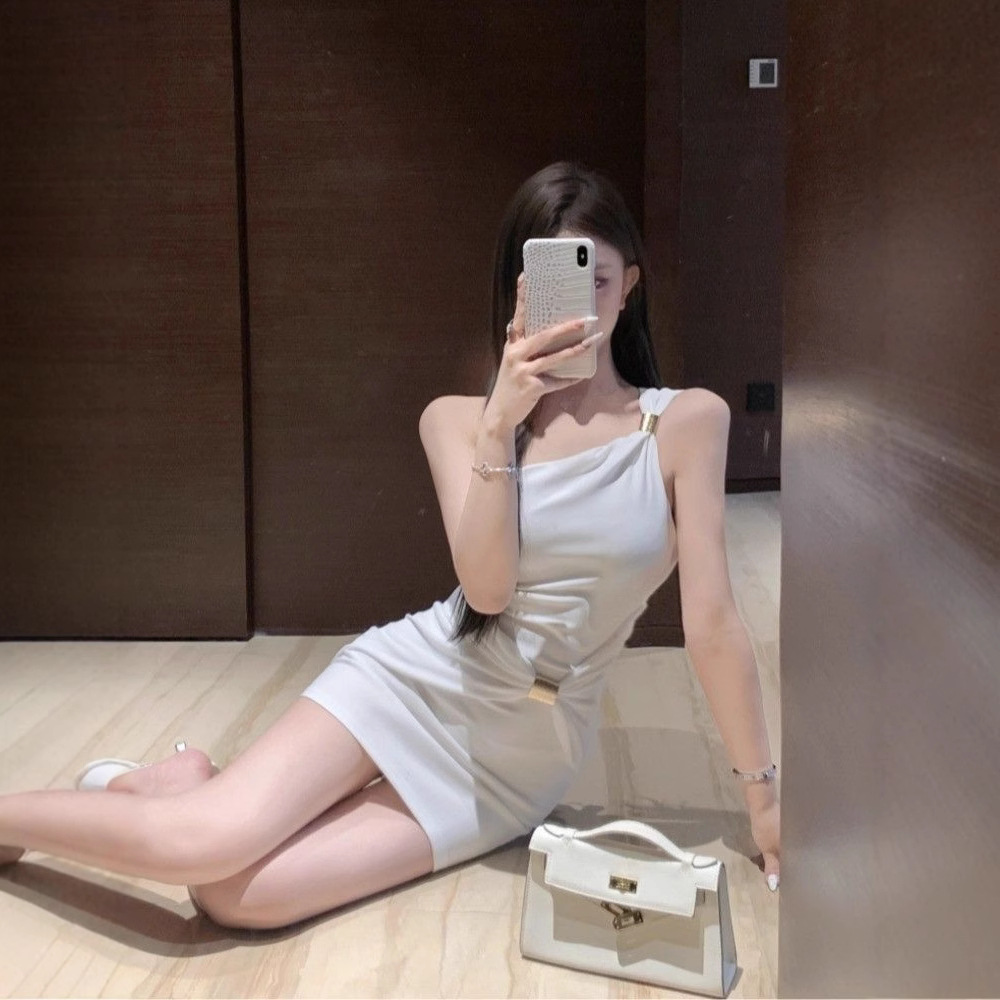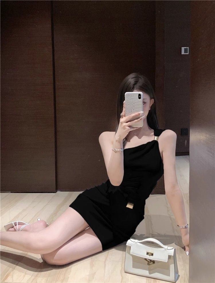 性感辣妹风斜肩单肩吊带连衣裙女夏季新款修身显瘦高级感包臀短裙
