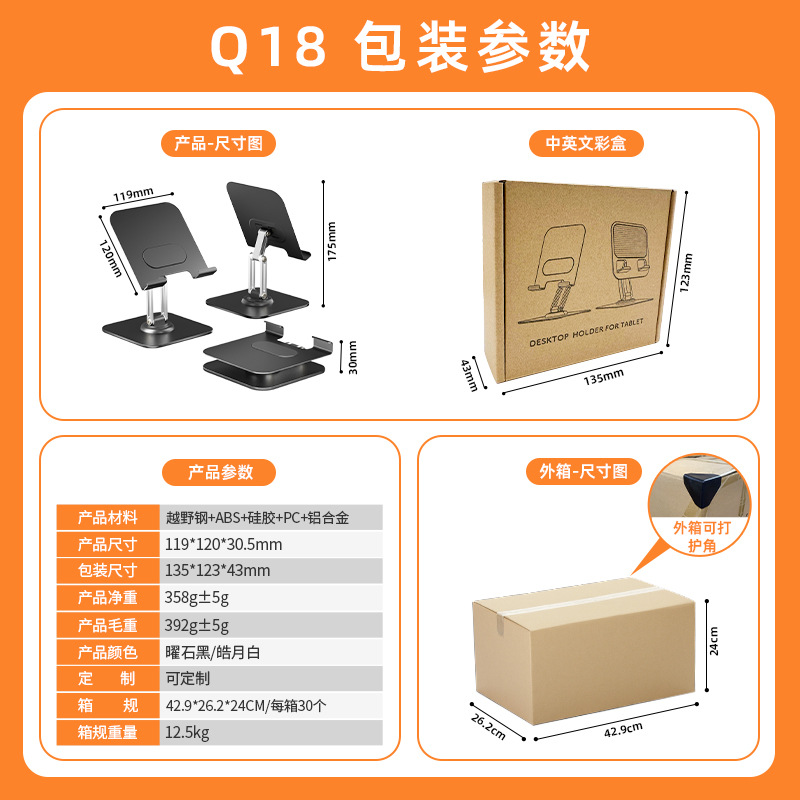 铝合金桌面平板直播支撑架 全金属平板电脑支架散热镂空固定底座 便携式360°旋转平板电脑手机支架拓扩展坞无极升降全铝合金折叠