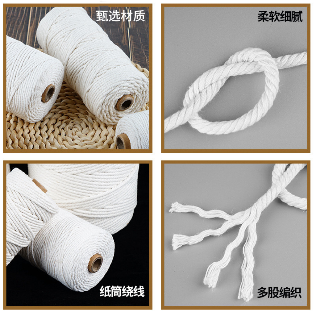 棉线绳手工Diy合股棉绳挂毯编织吊牌绳粽子打捆绳子 白色棉线绳
