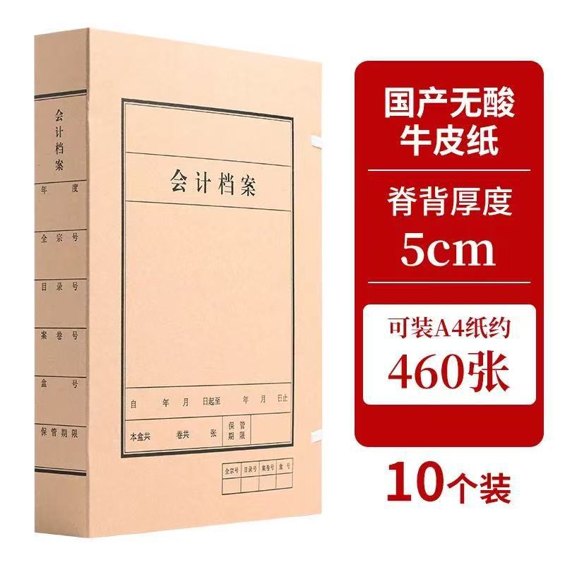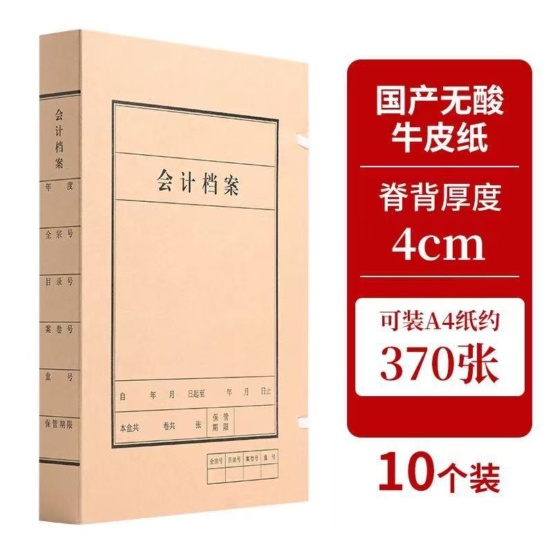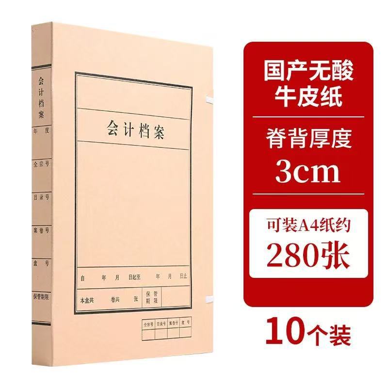 会计档案盒加厚无酸纸档案盒凭证盒办公档案资料牛皮纸收纳盒