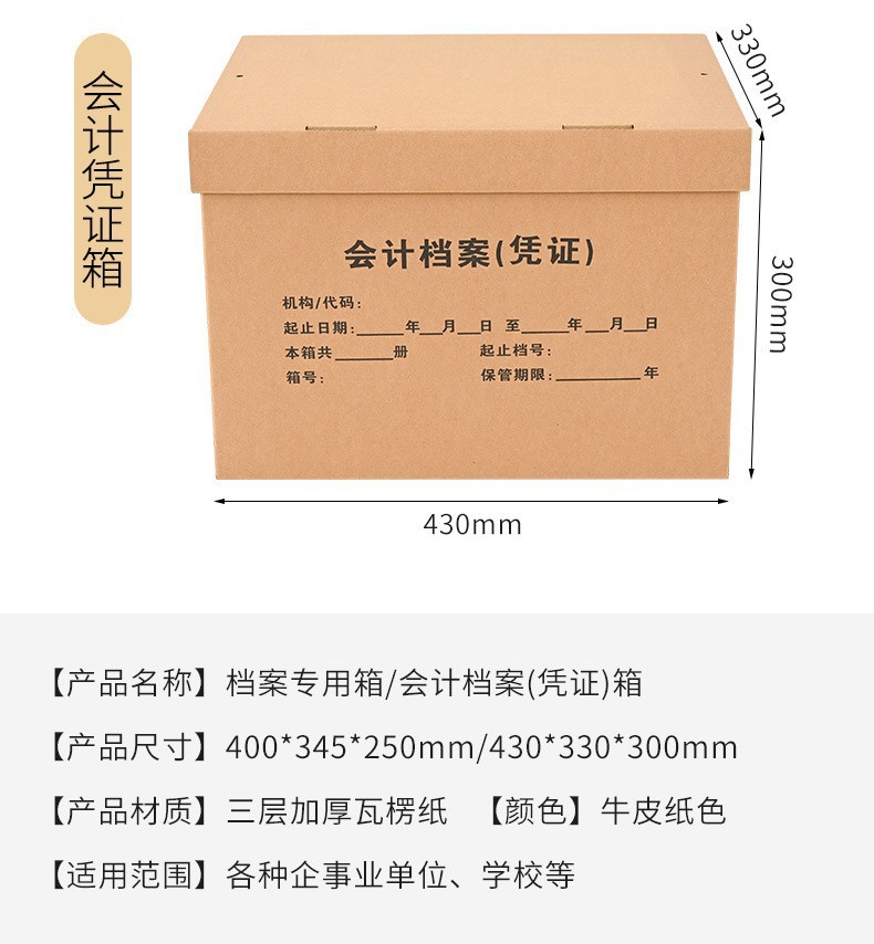 牛皮纸档案专用箱会计专用凭证箱大容量档案箱a4收纳箱批发
