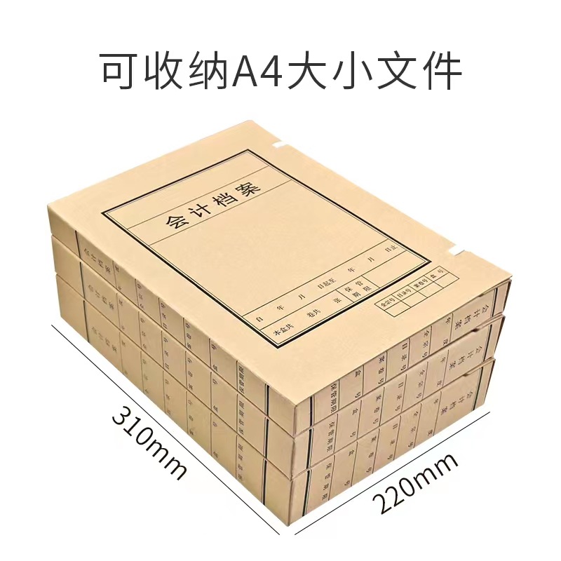 会计档案盒牛皮纸加厚大容量无酸纸a4文件资料盒凭证卷宗收纳盒
