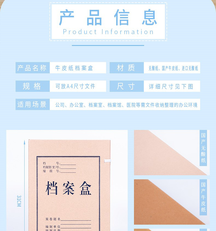 办公批发A4牛皮纸档案盒加厚文件盒办公文件收纳盒资料文件夹贴标