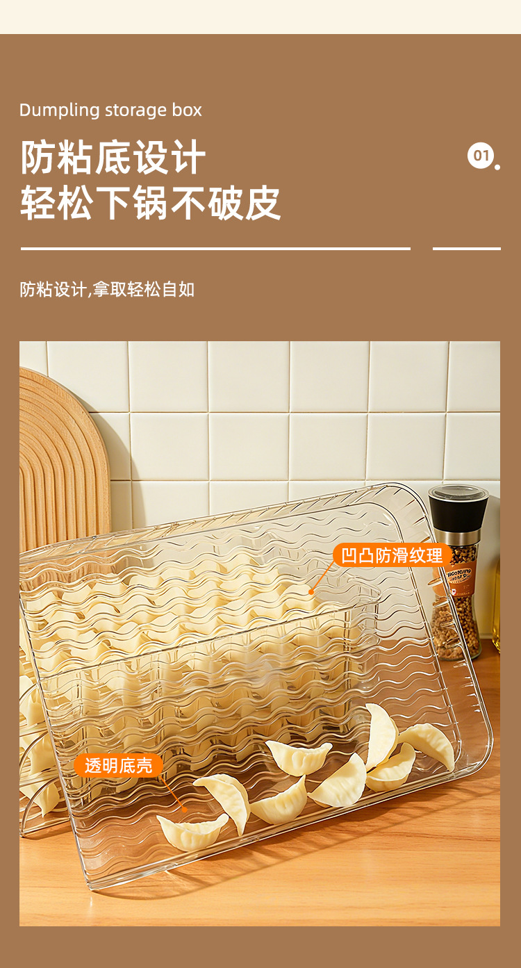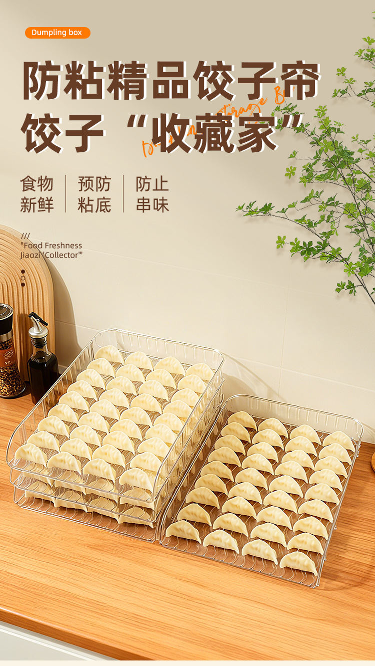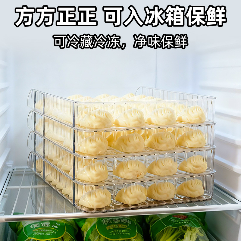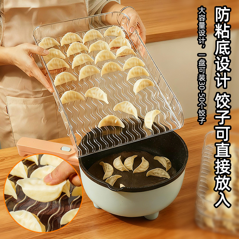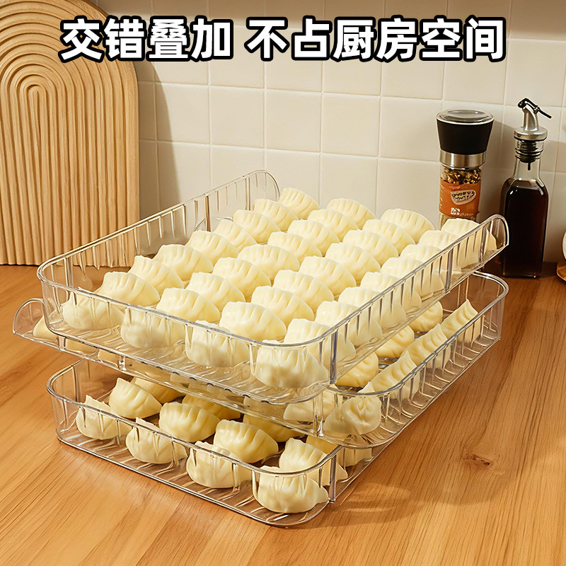 新款大容量速冻专用托盘盖帘家用收纳盒塑料饺子盒窄边多层水饺帘