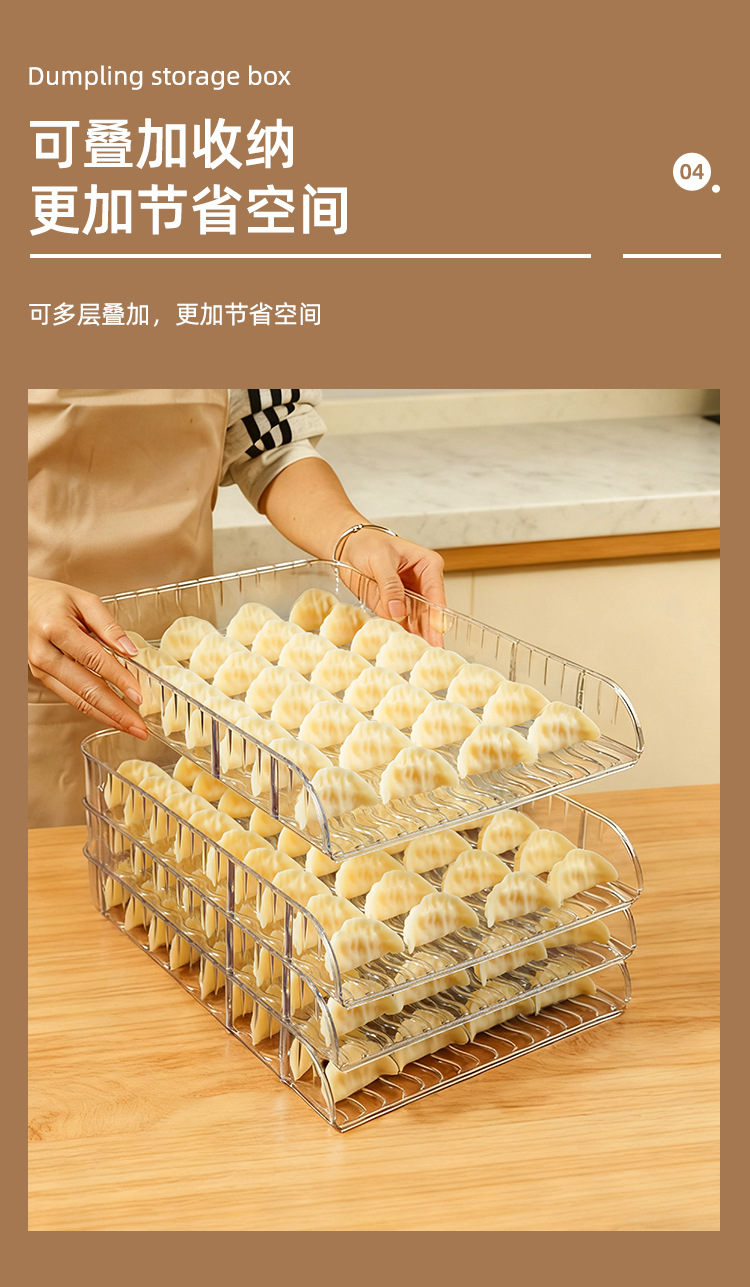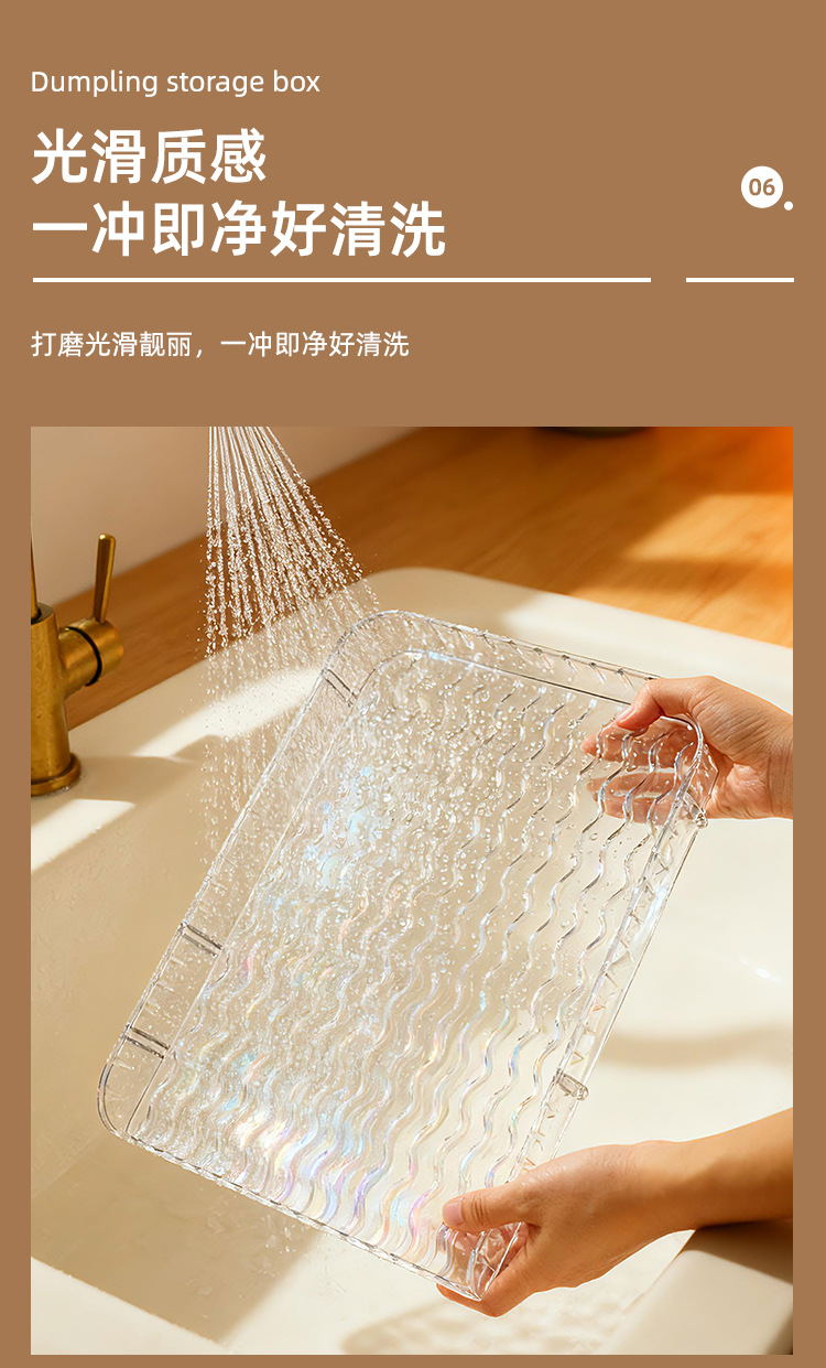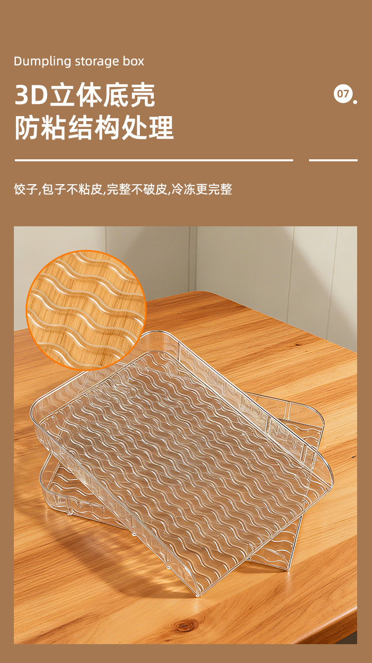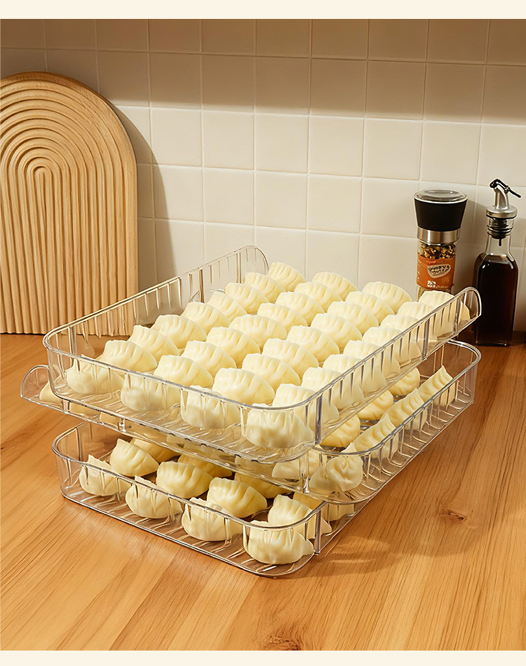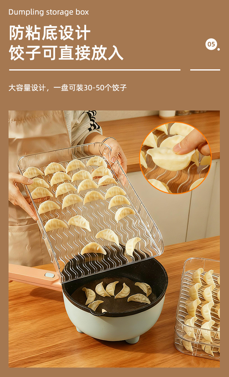 新款大容量速冻专用托盘盖帘家用收纳盒塑料饺子盒窄边多层水饺帘