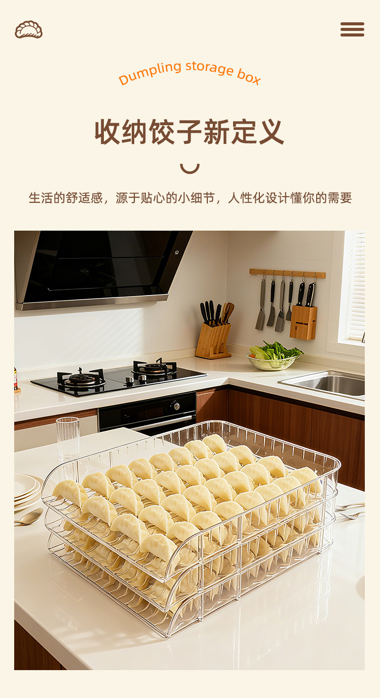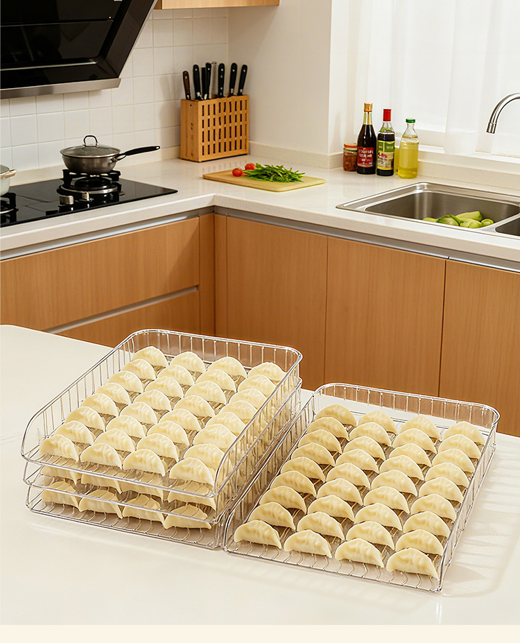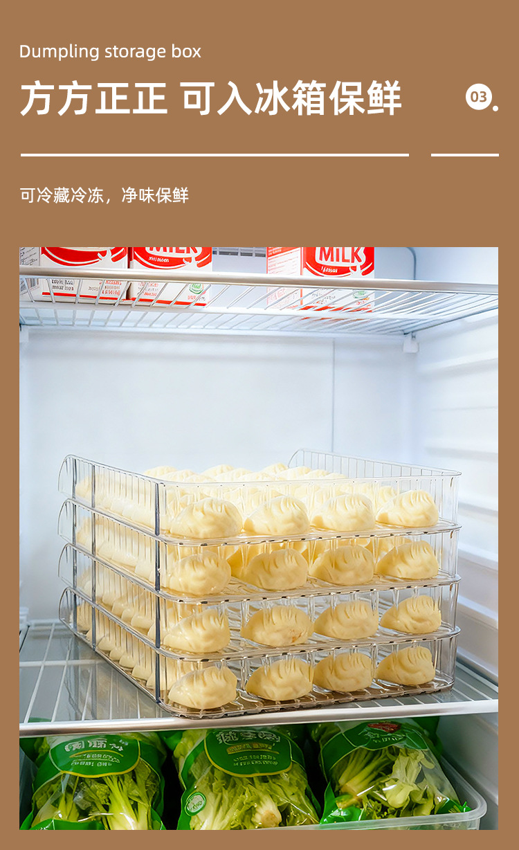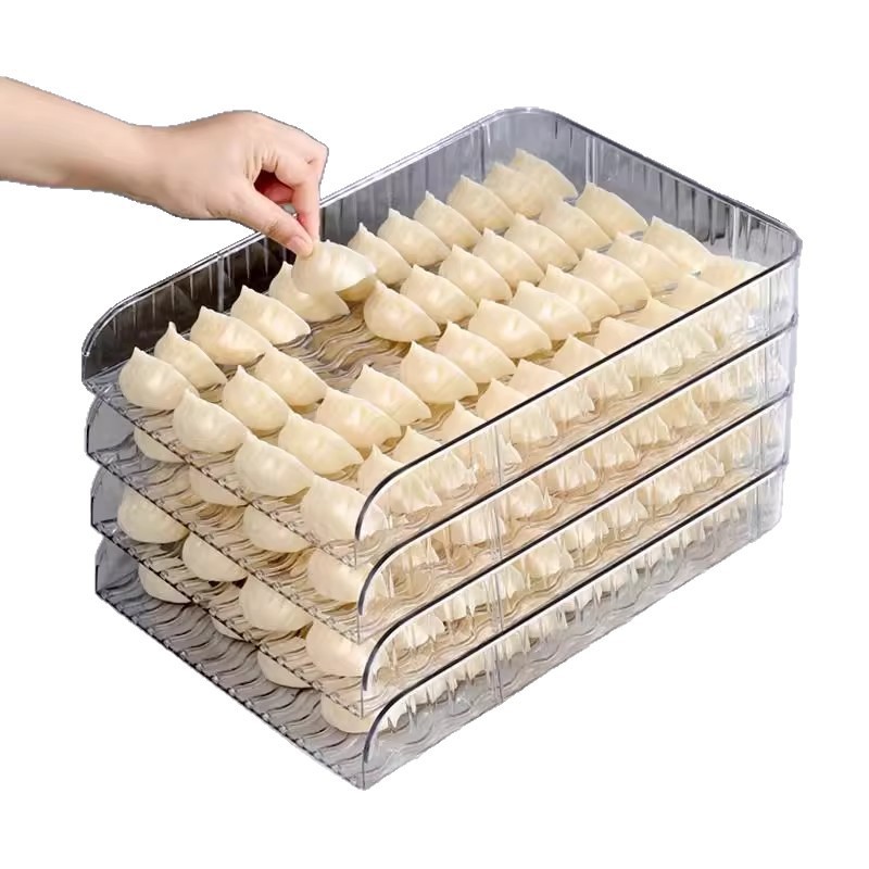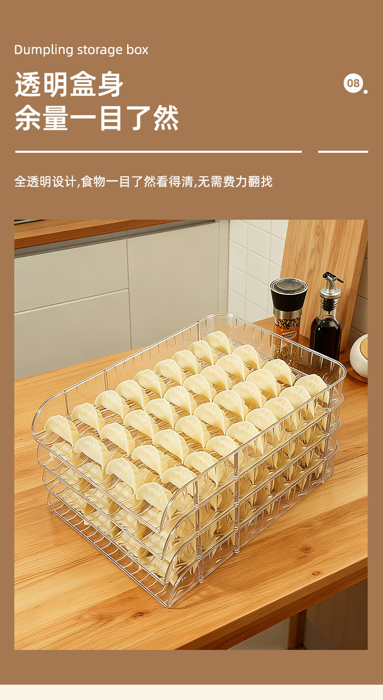 新款大容量速冻专用托盘盖帘家用收纳盒塑料饺子盒窄边多层水饺帘