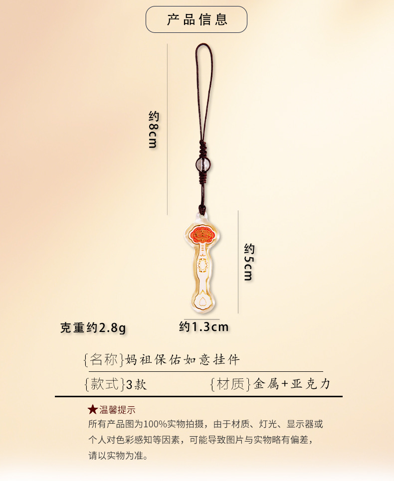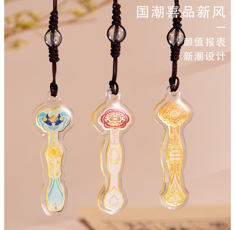 原创中国风如意亚克力镶嵌小金牌手机挂牌文创好运祈福礼品纪念品