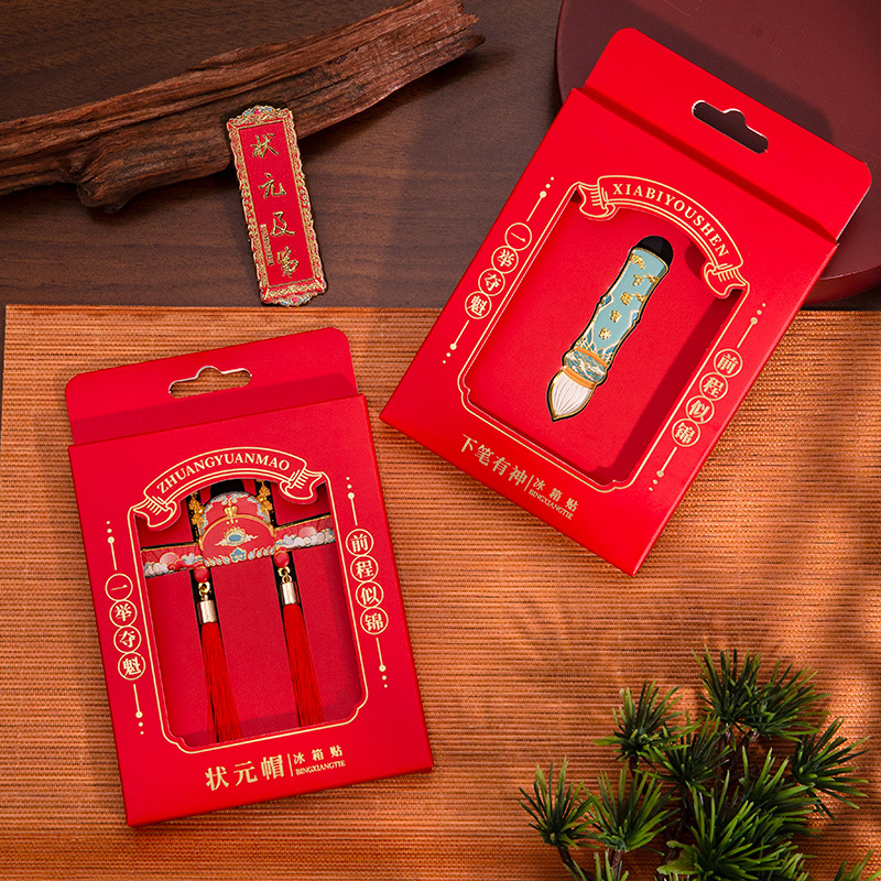 原创金榜题名状元帽流苏款金属冰箱贴国潮装饰中考高考伴手礼