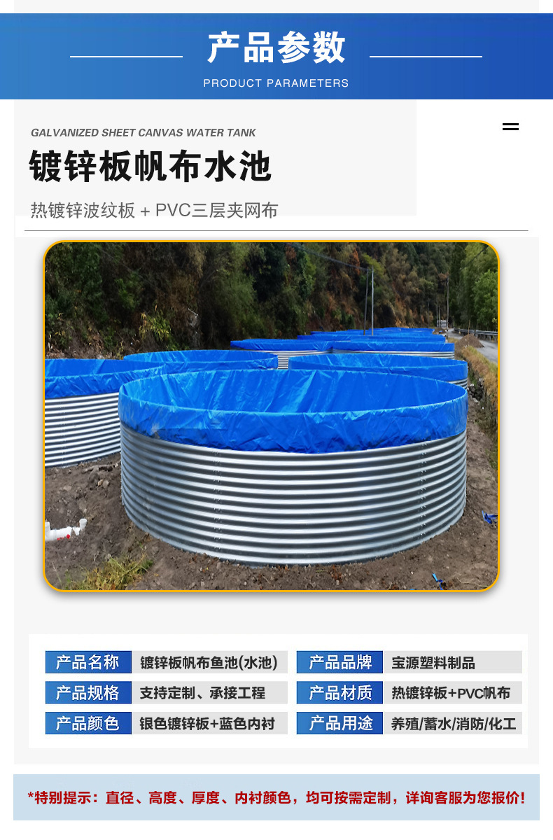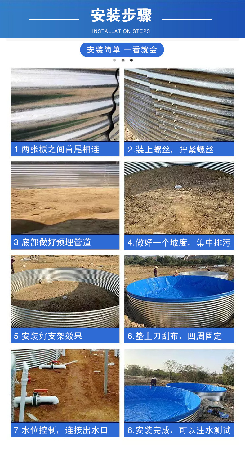 圆形镀锌板蓄水池高标准农田供水池园林森林消防贮水罐果园储水池