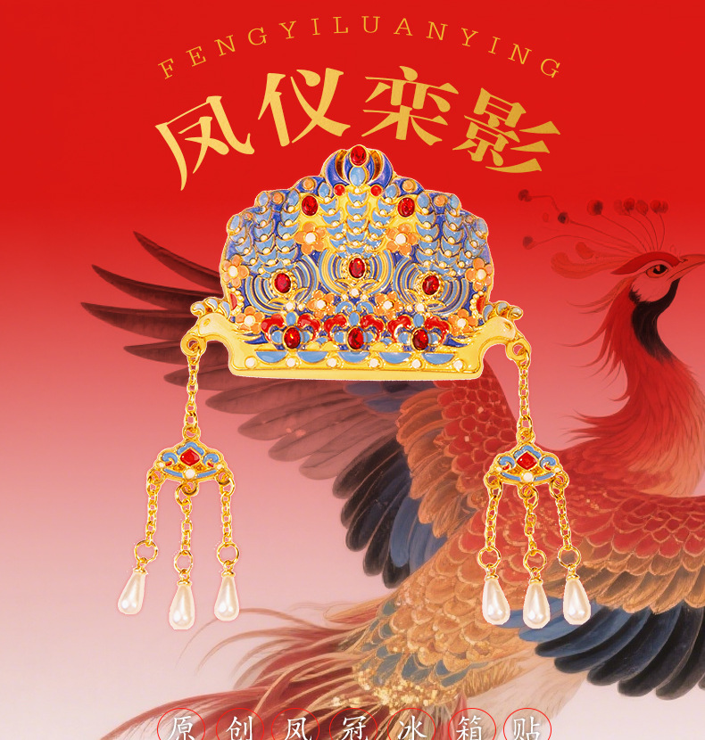 原创国潮爆款凤冠冰箱贴装饰文创金属磁吸博物馆旅游纪念工艺品