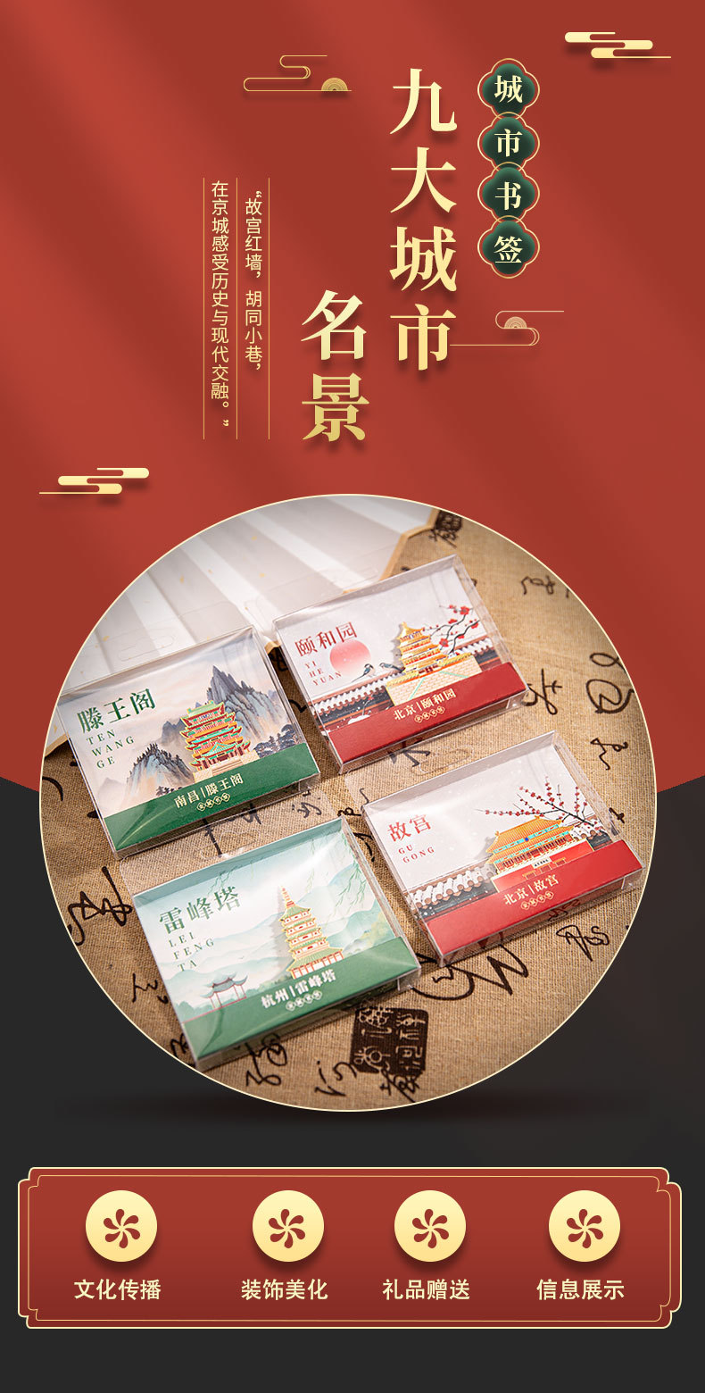 原创金属书签城市黄鹤楼建筑北京旅游景区纪念景点文创小礼品创意