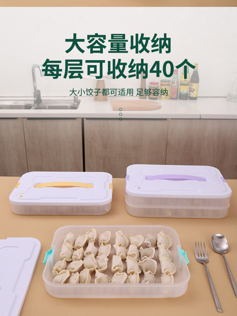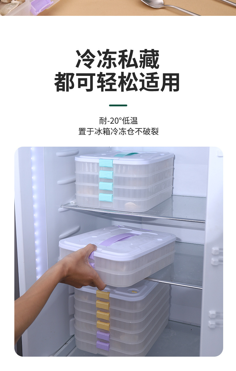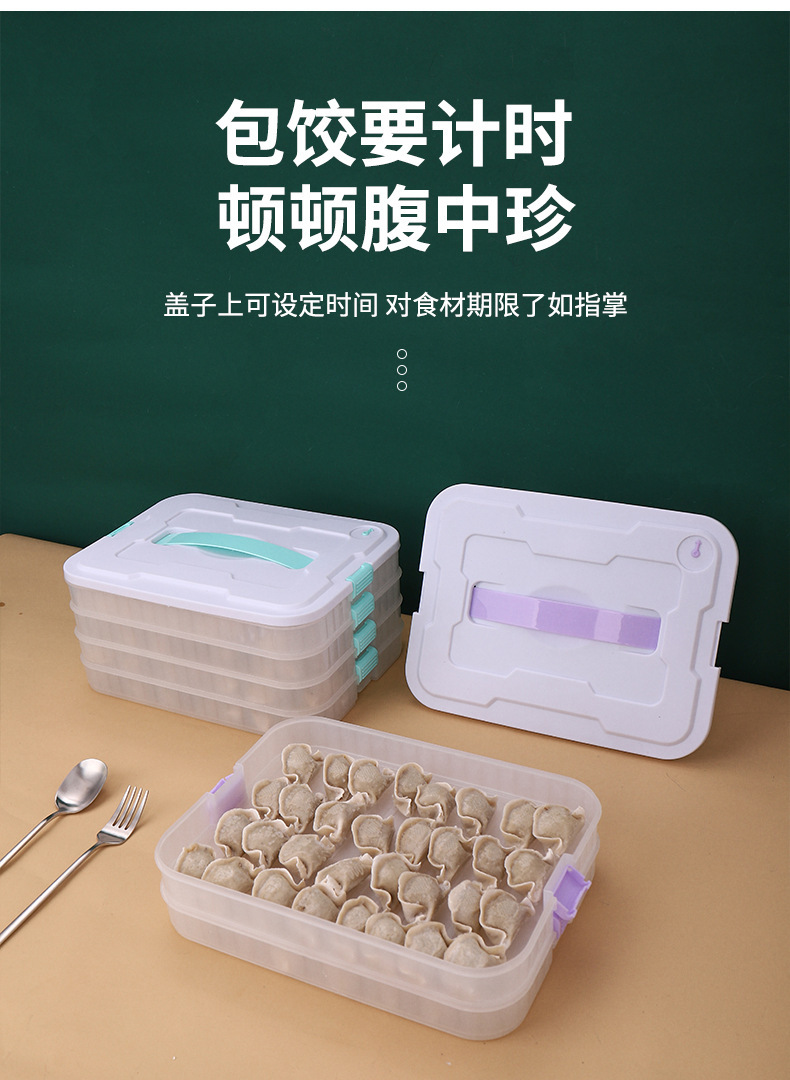 26年新款饺子盒厨房计时密封加厚PP大容量手提饺子收纳盒水饺盒