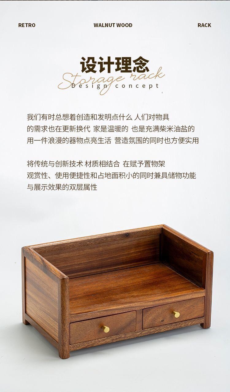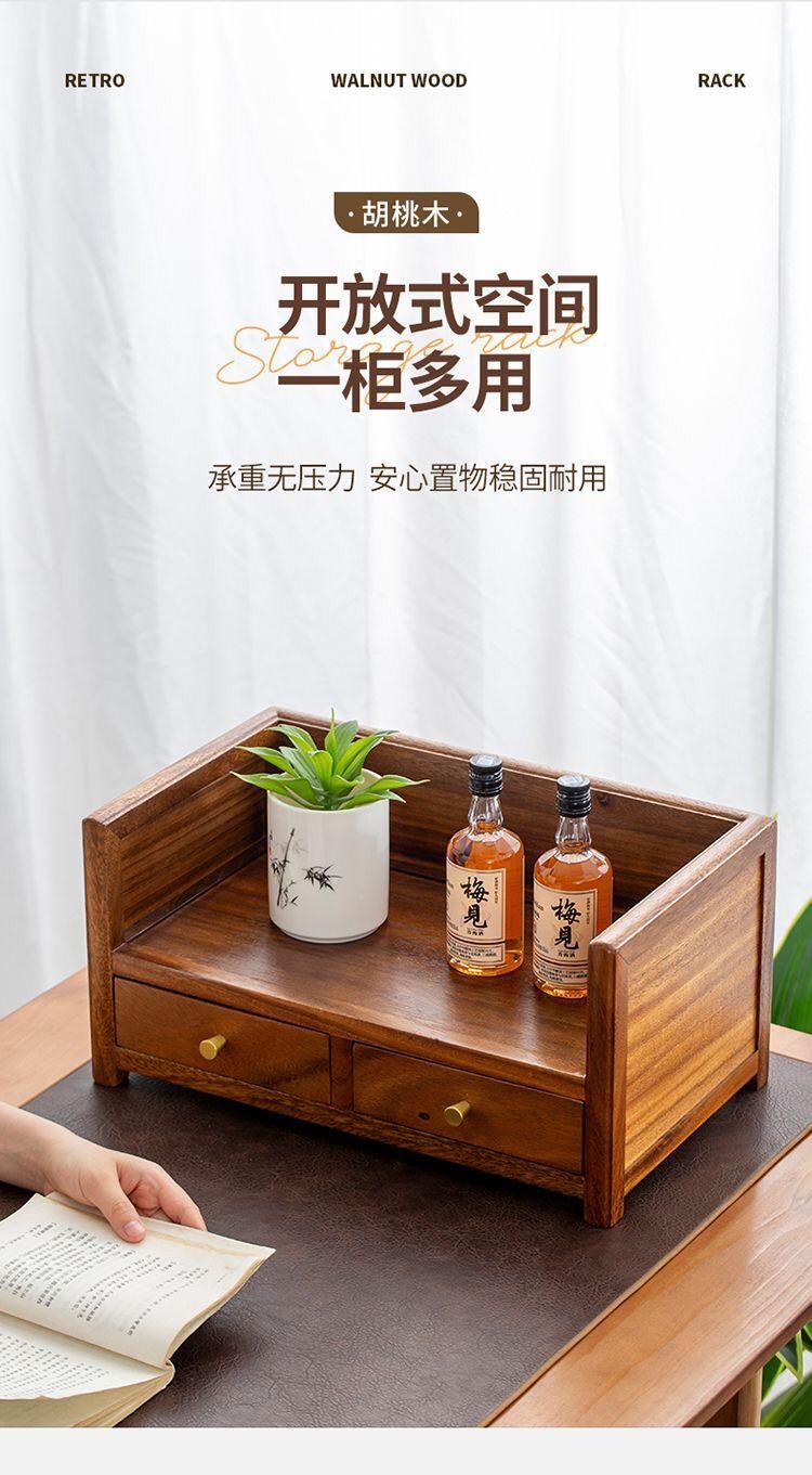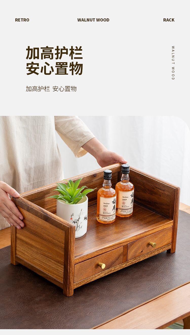 胡桃木双层抽屉式桌面收纳盒实木家用茶饼整理新中式茶几置物盒