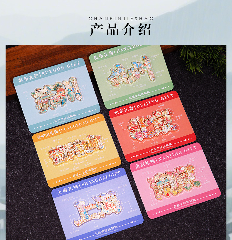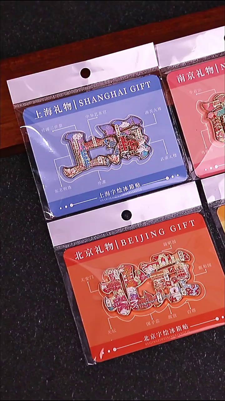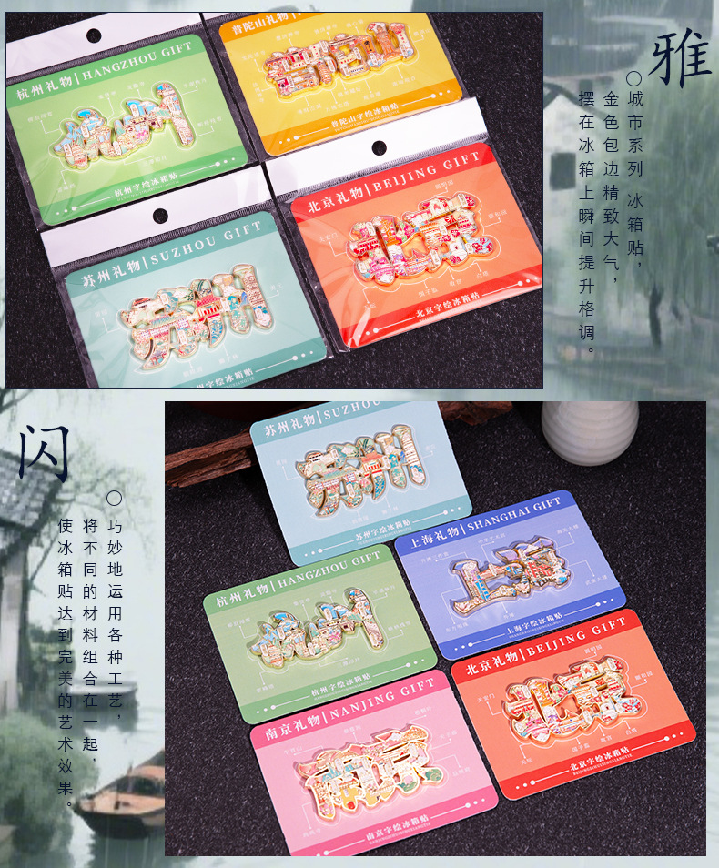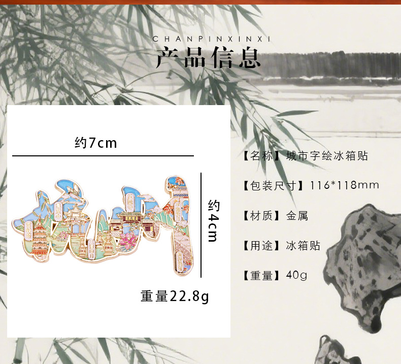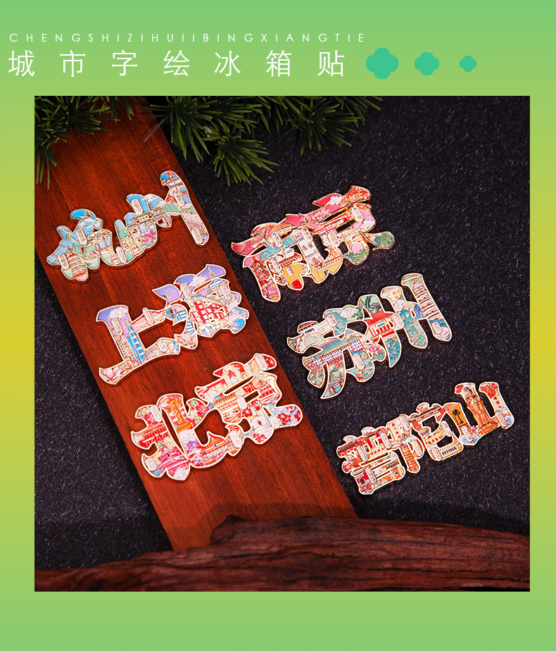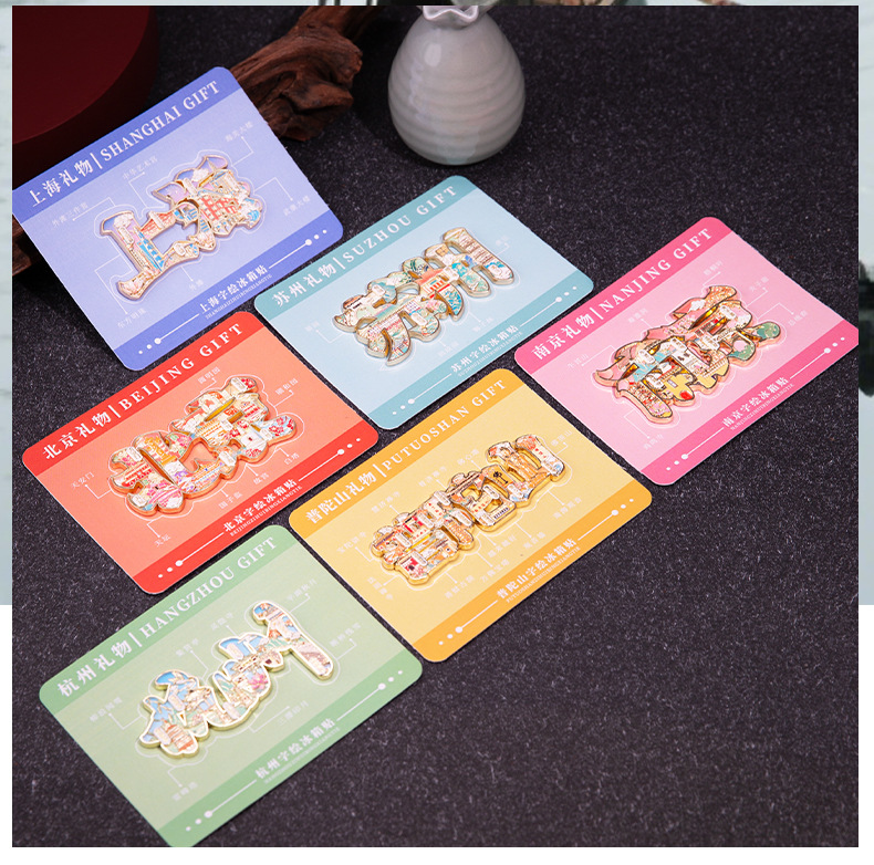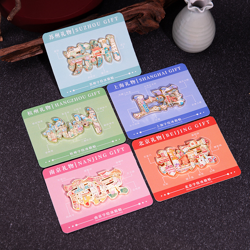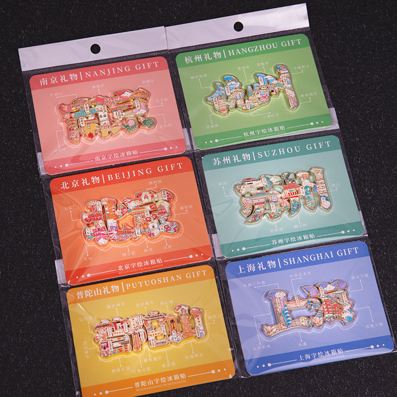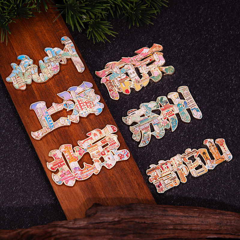 城市字绘浮雕冰箱贴金属磁吸中国风城市文创旅游纪念品精美伴手礼