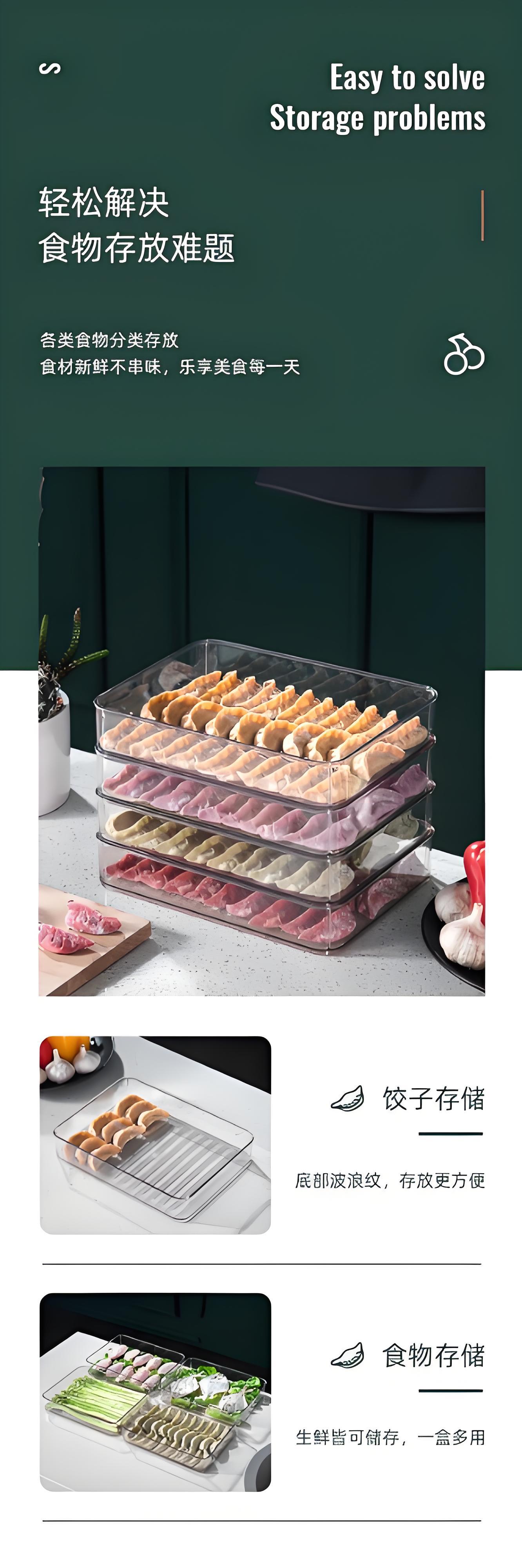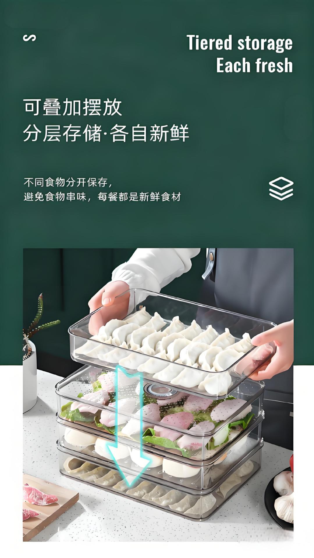 家用食品级加厚饺子收纳盒冰箱多层冷冻保鲜盒专用水饺馄饨速冻盒