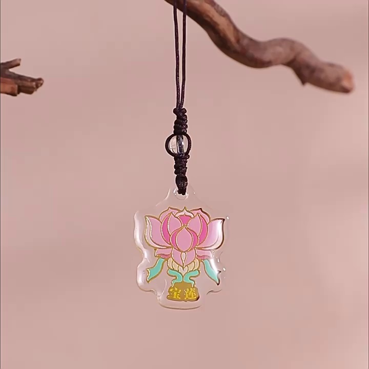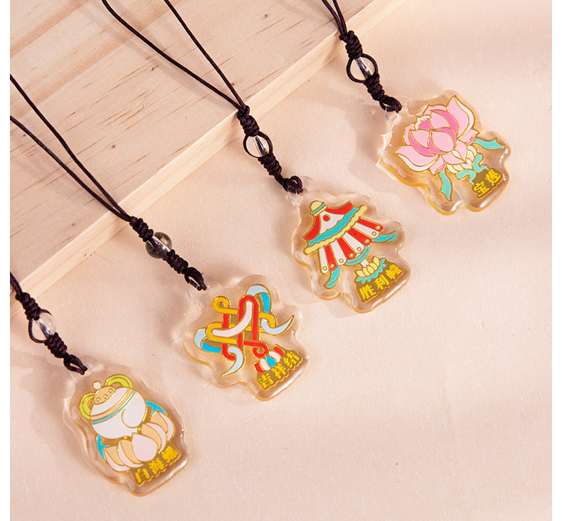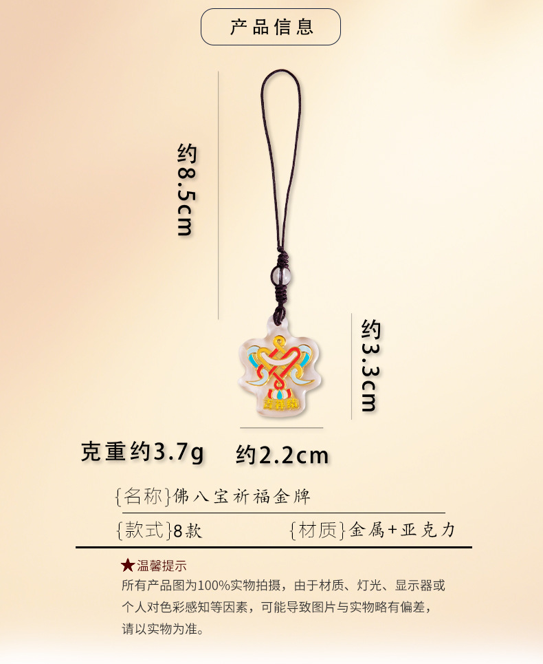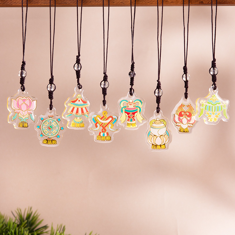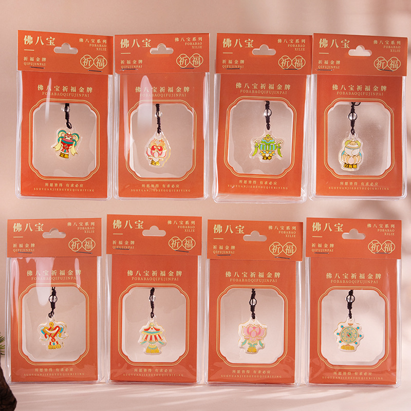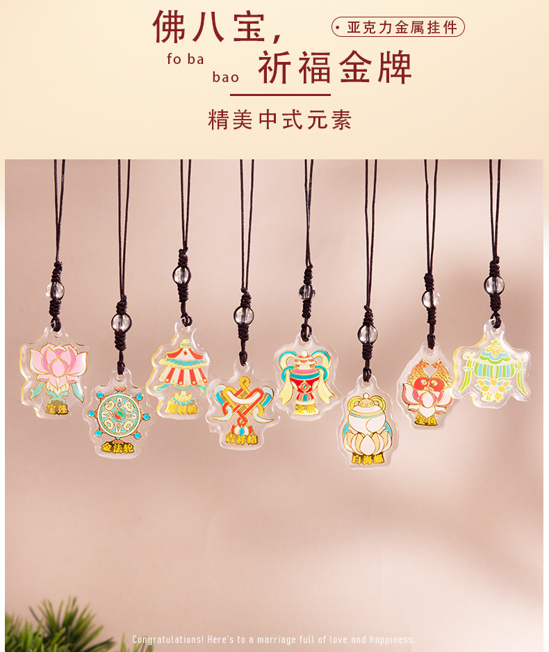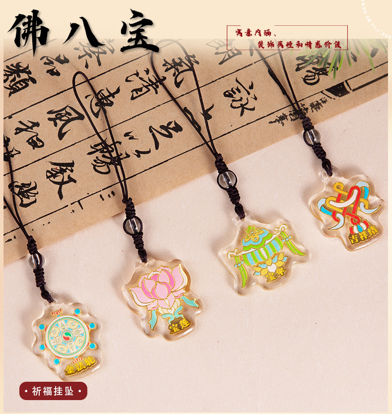 原创佛八宝挂件亚克力镶嵌小金牌手机挂牌文创好运祈福礼品纪念