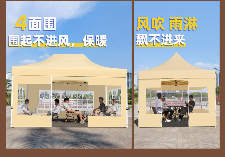四脚伸缩雨棚四角户外防雨帐篷透明围布夜市摆摊用专用遮阳棚大伞