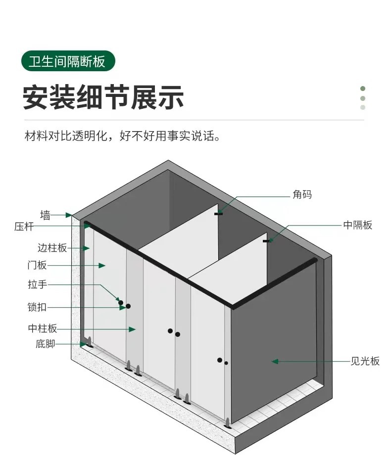 公共卫生间隔断板学校厕所隔断抗倍特板淋浴PVC铝锋窝防水隔断门
