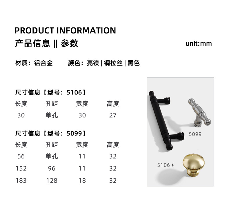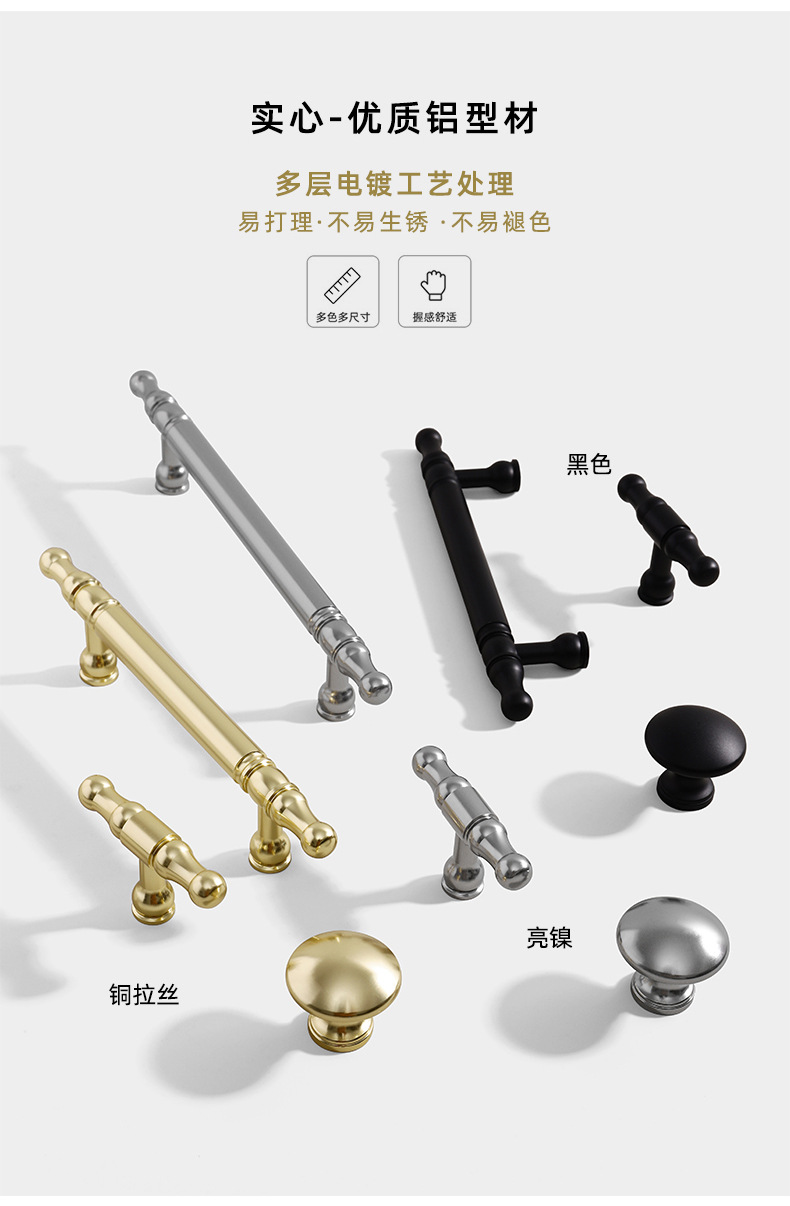 轻奢法式衣柜门铝合金拉手简约橱柜门把手抽屉圆球形铜色拉手配件