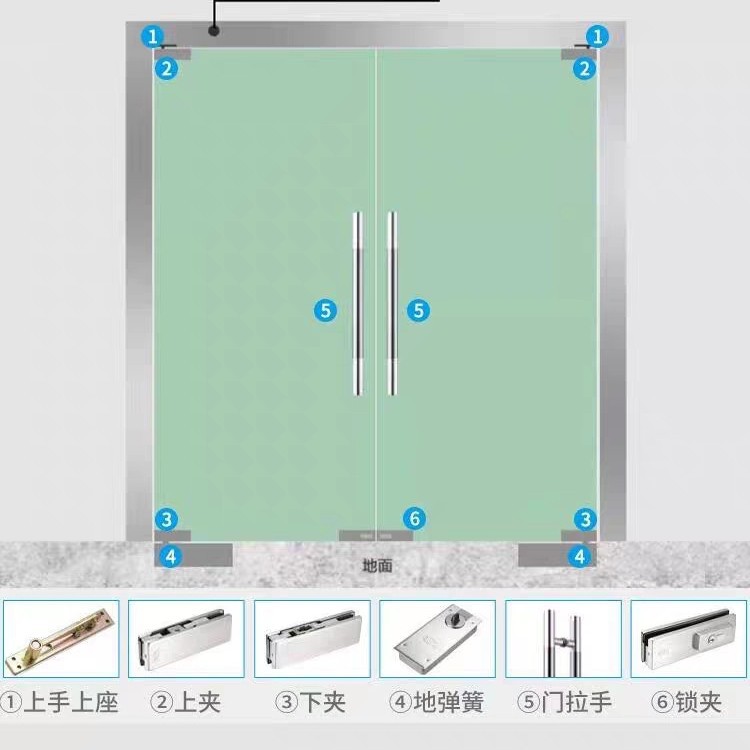 Glassdoor全玻璃地弹门跨境商用有框无框玻璃门Pivot door