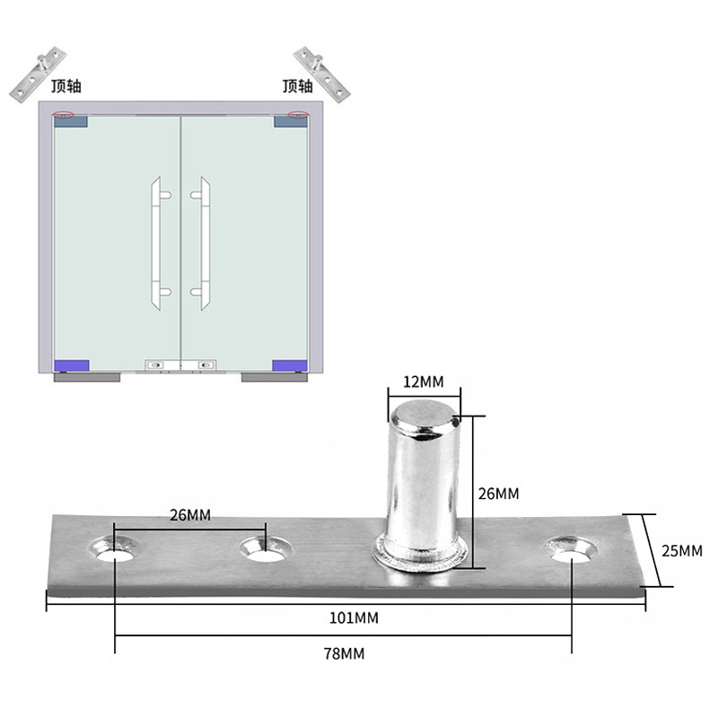 玻璃门地弹簧上夹配件 简易门轴 上轴不锈钢顶轴片 上支架 固定轴
