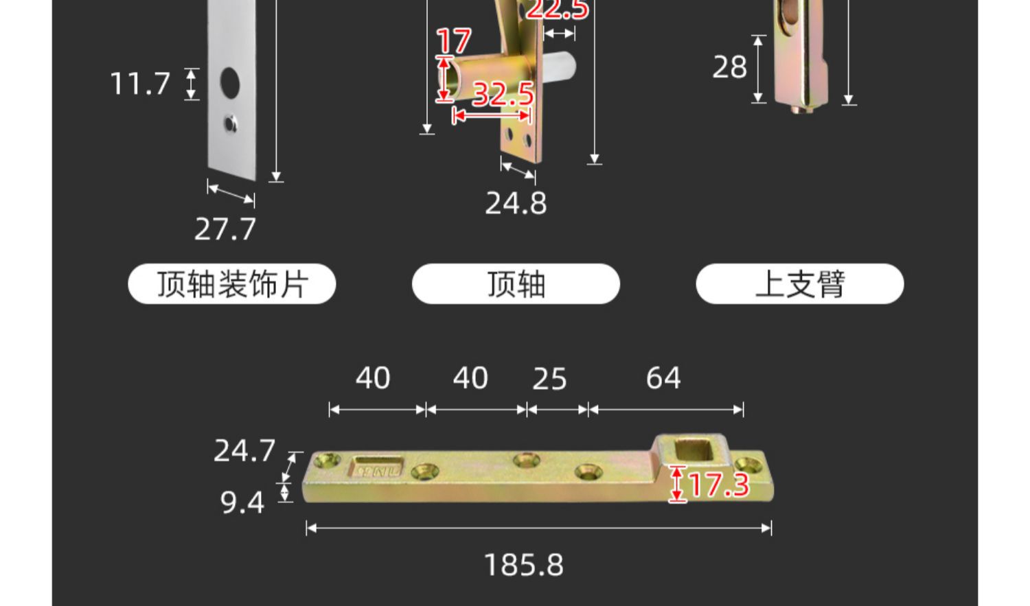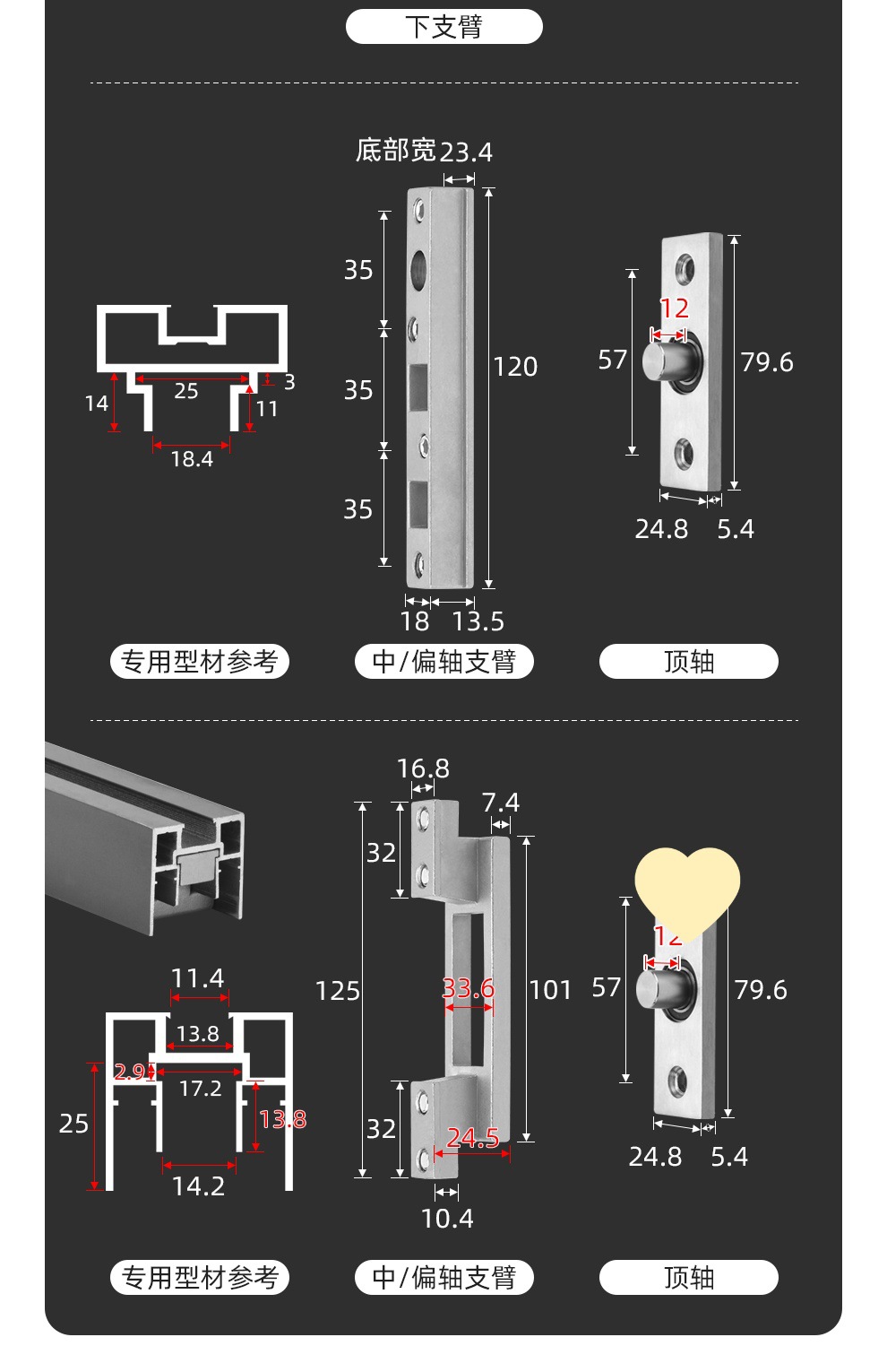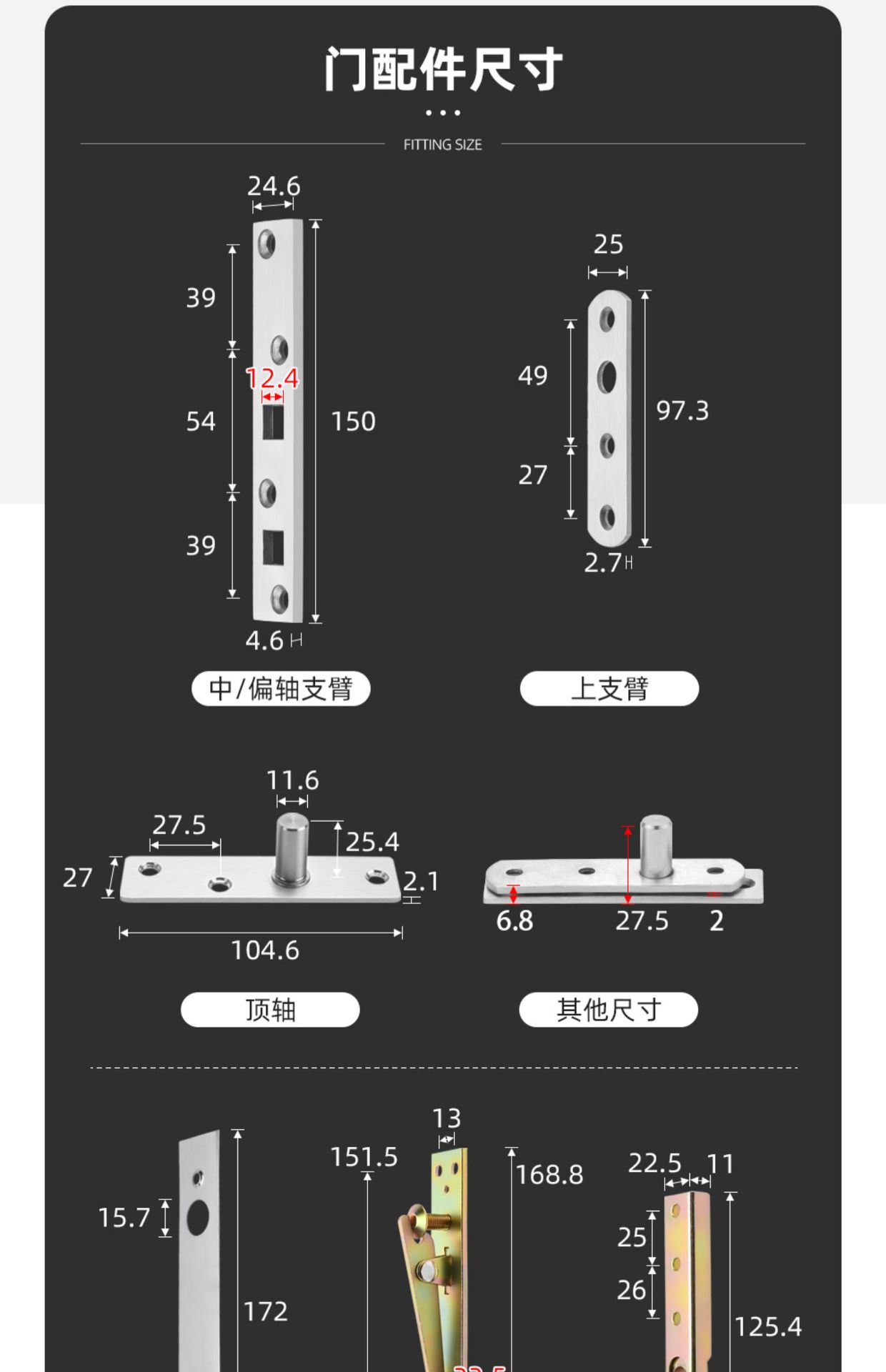 批发极窄玻璃门天地轴360度拱形框中轴旋转门配件木门小型地弹簧