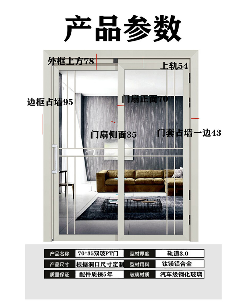跨境厨房客厅推拉门隔断PT玻璃门别墅阳台pd门铝合金折叠推拉门