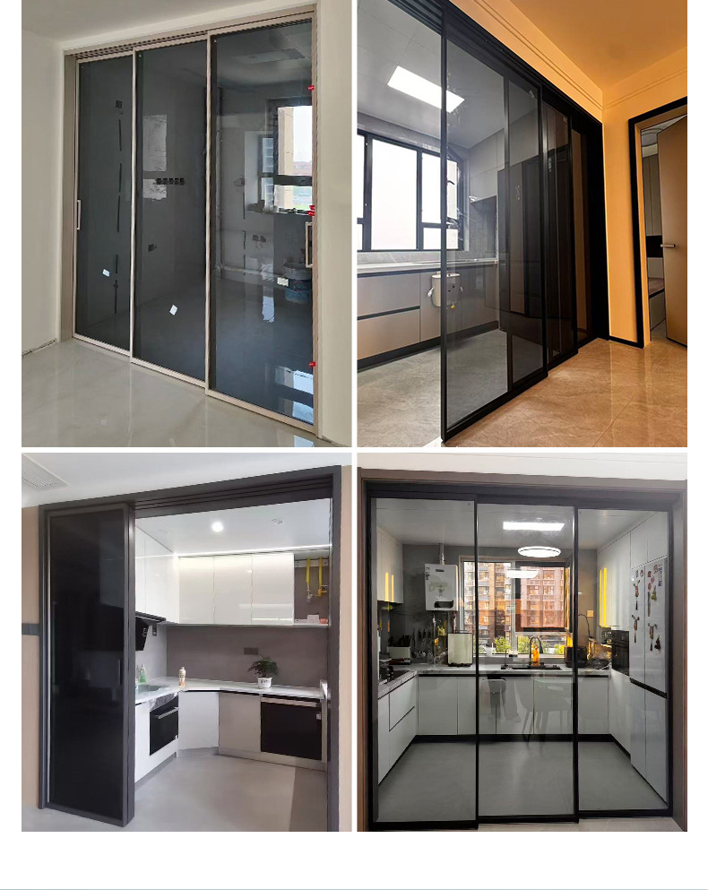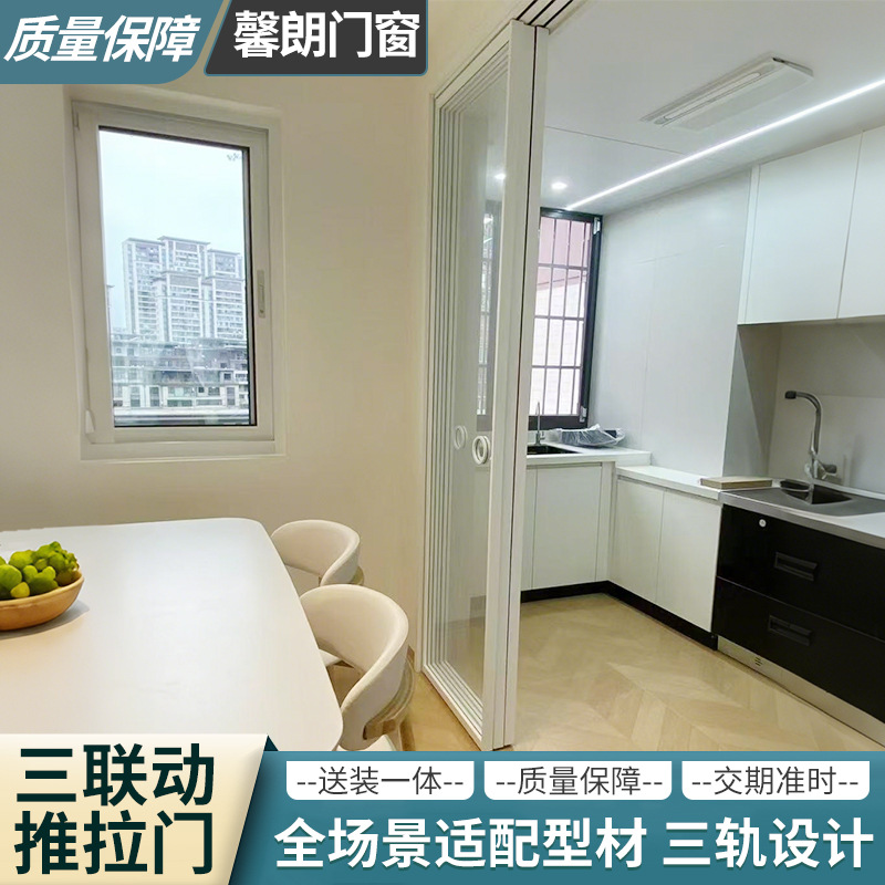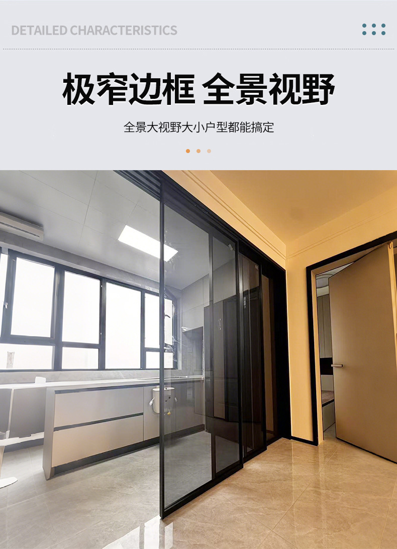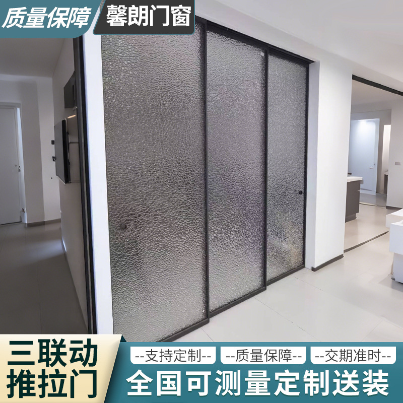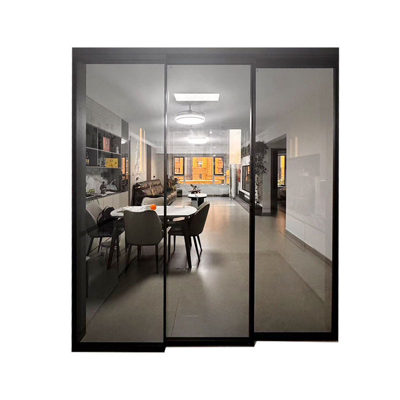现代极窄边框钢化玻璃阳台客厅隔音隔断门 完美系统三联动推拉门