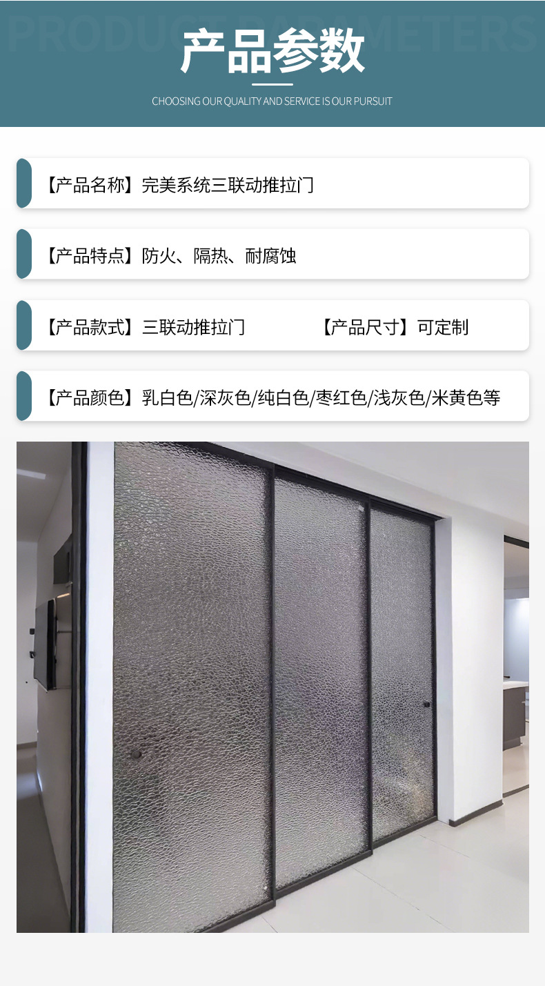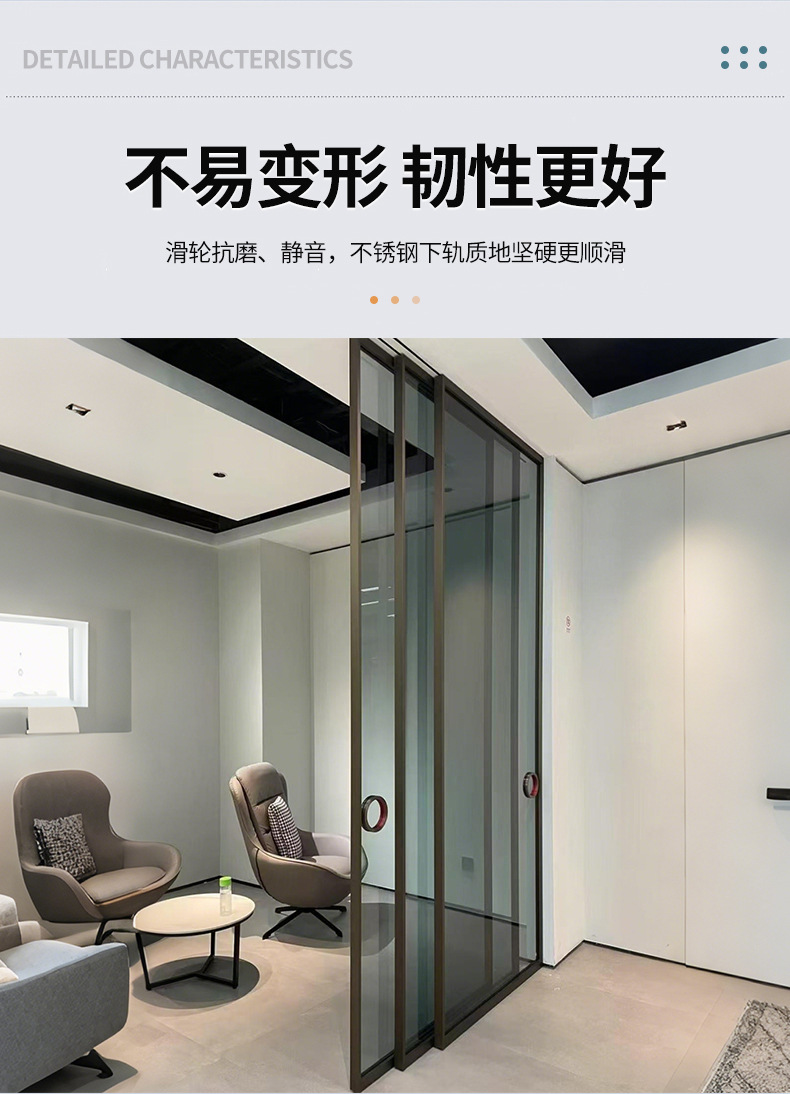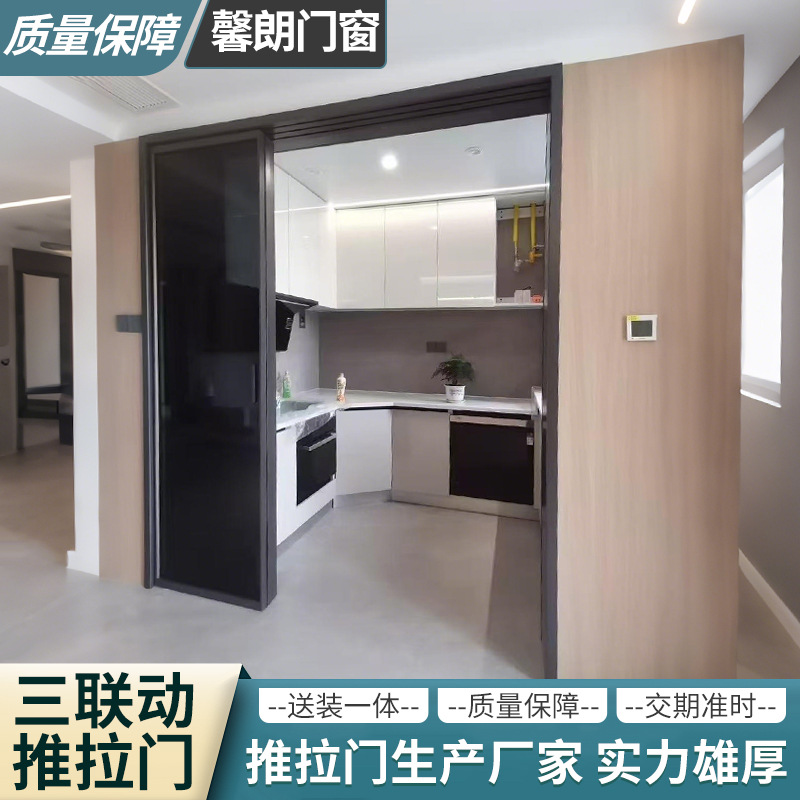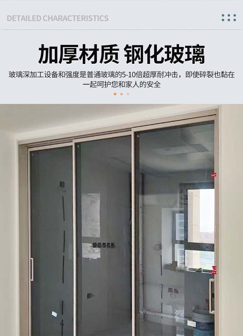 现代极窄边框钢化玻璃阳台客厅隔音隔断门 完美系统三联动推拉门