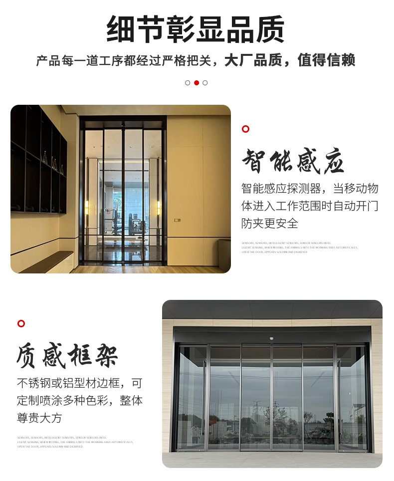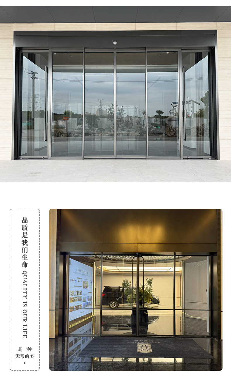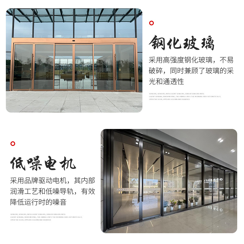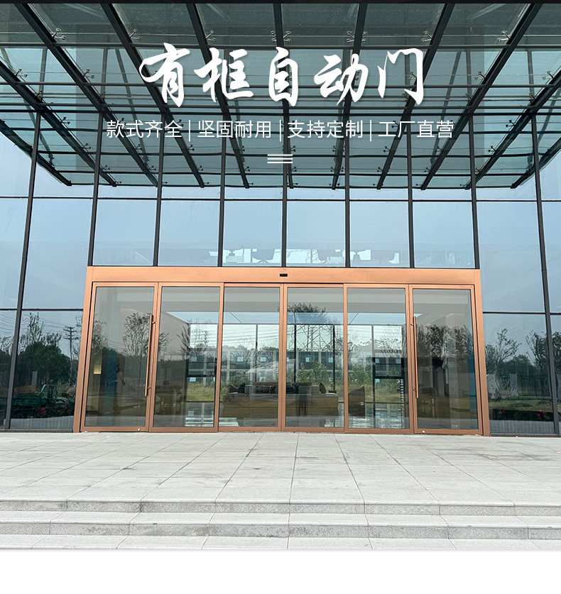 单位写字楼感应自动玻璃大门电动平移门工厂办公楼有框玻璃电动门