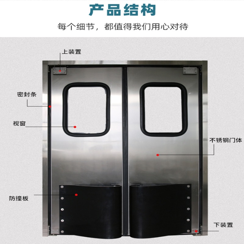 304不锈钢自由防撞门 PE防撞板厨房超市冷库食品车间PVC双向门