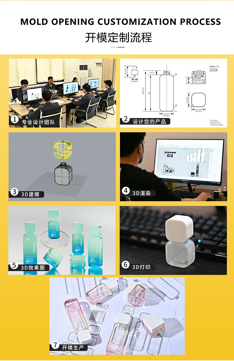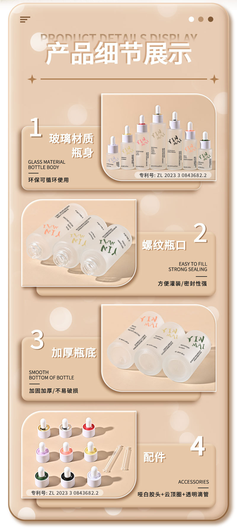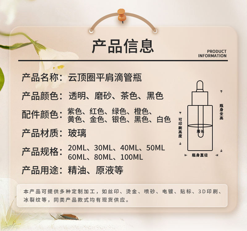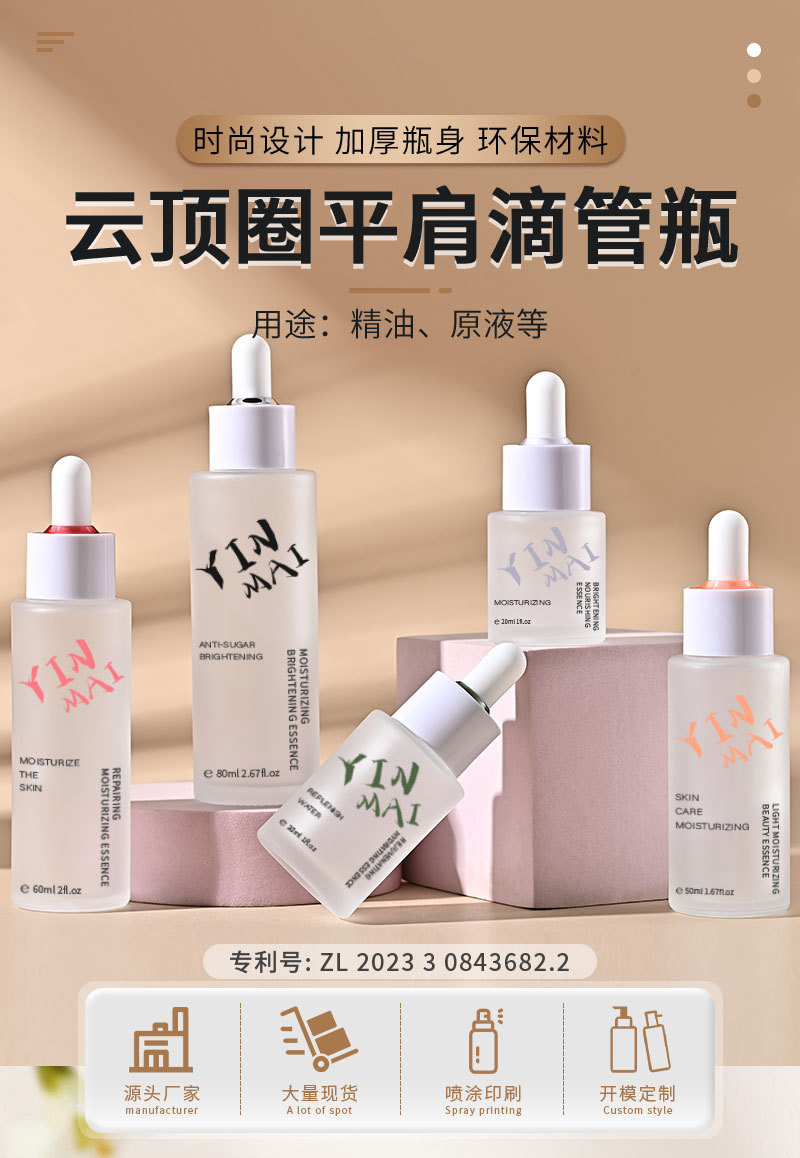 银脉专利20ml-100ml云顶圈平肩滴管瓶 精华原液玻璃瓶分装精油瓶