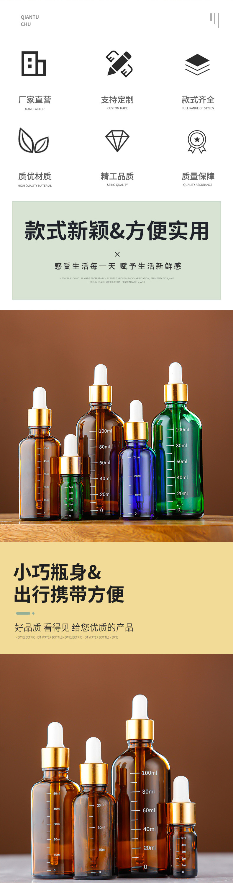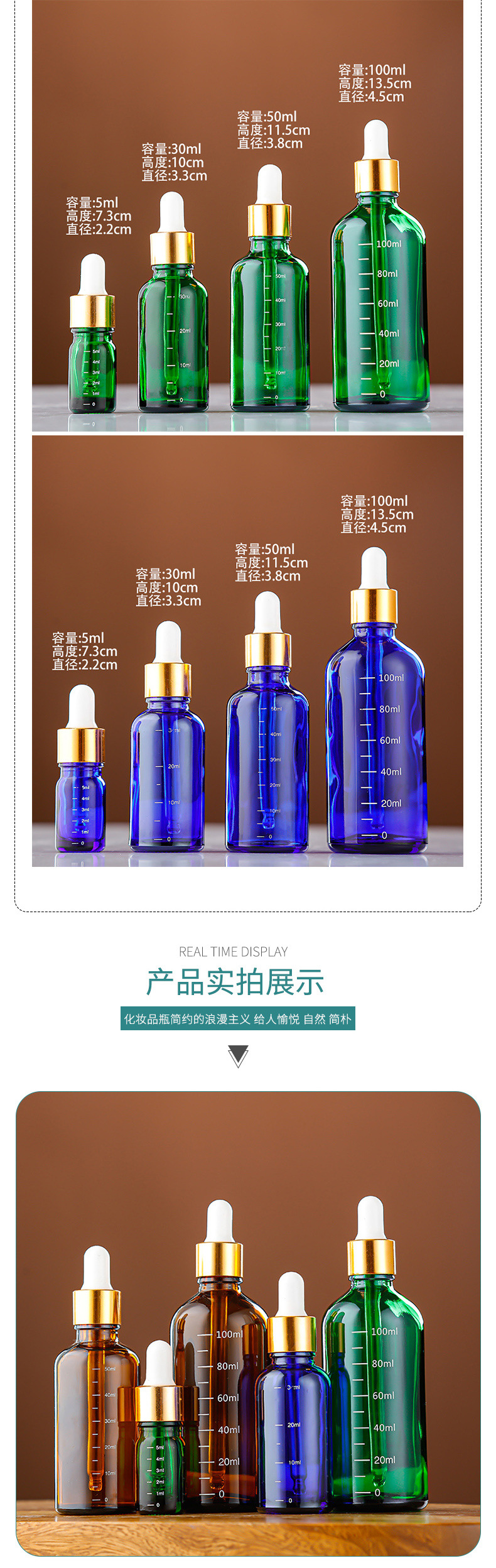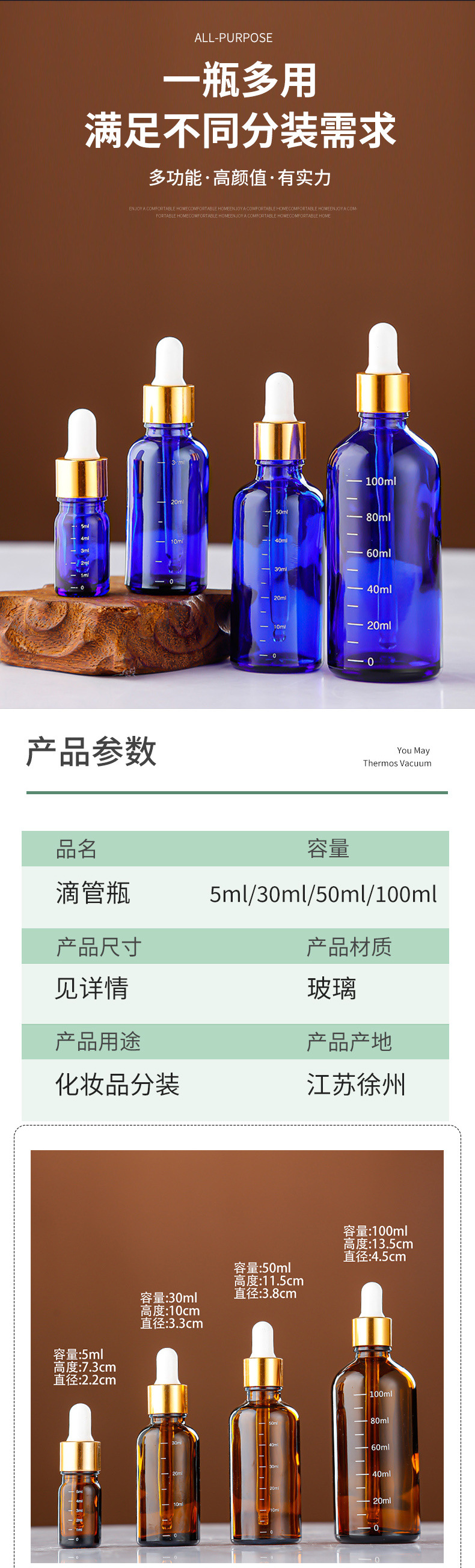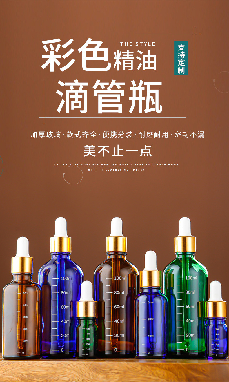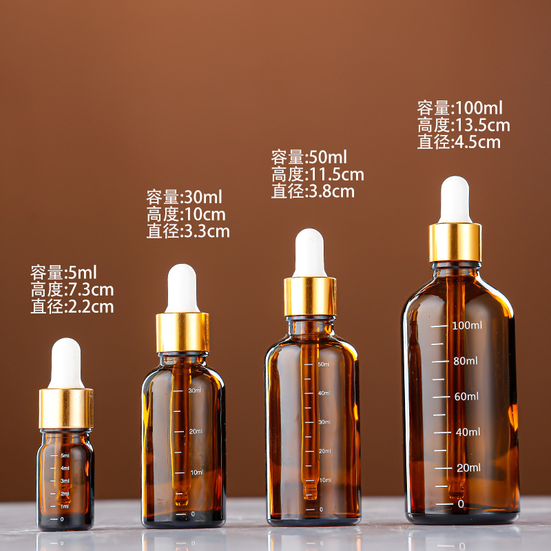 带刻度玻璃精油瓶棕色避光精华液分装瓶胶头滴管精华液小样空瓶子