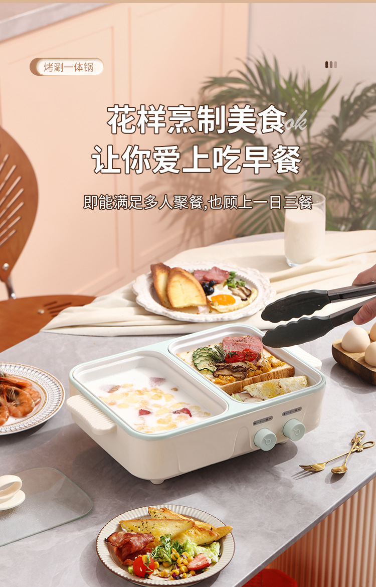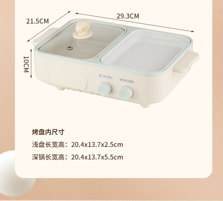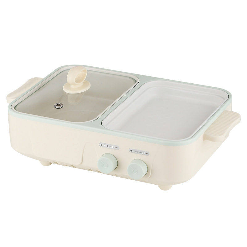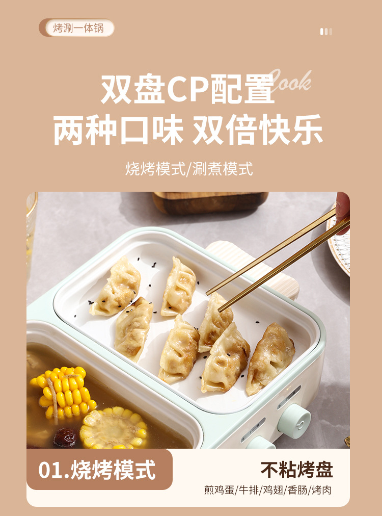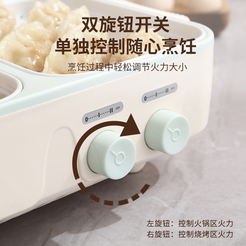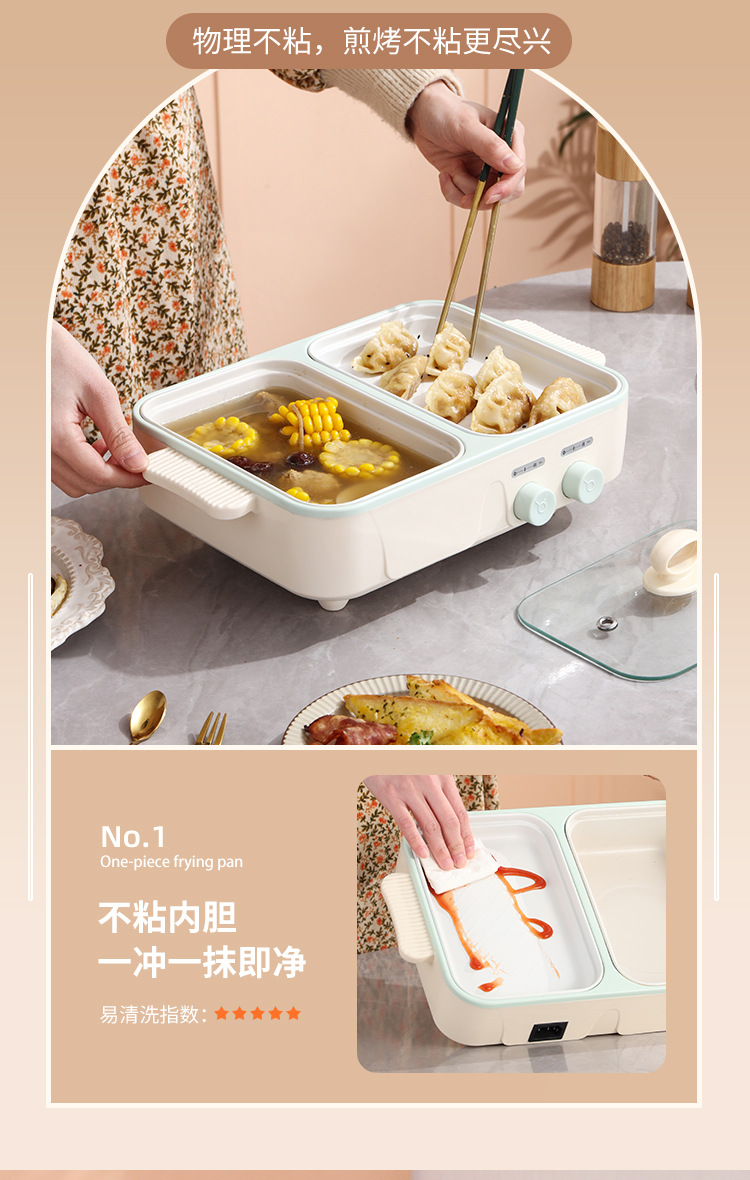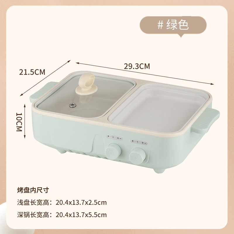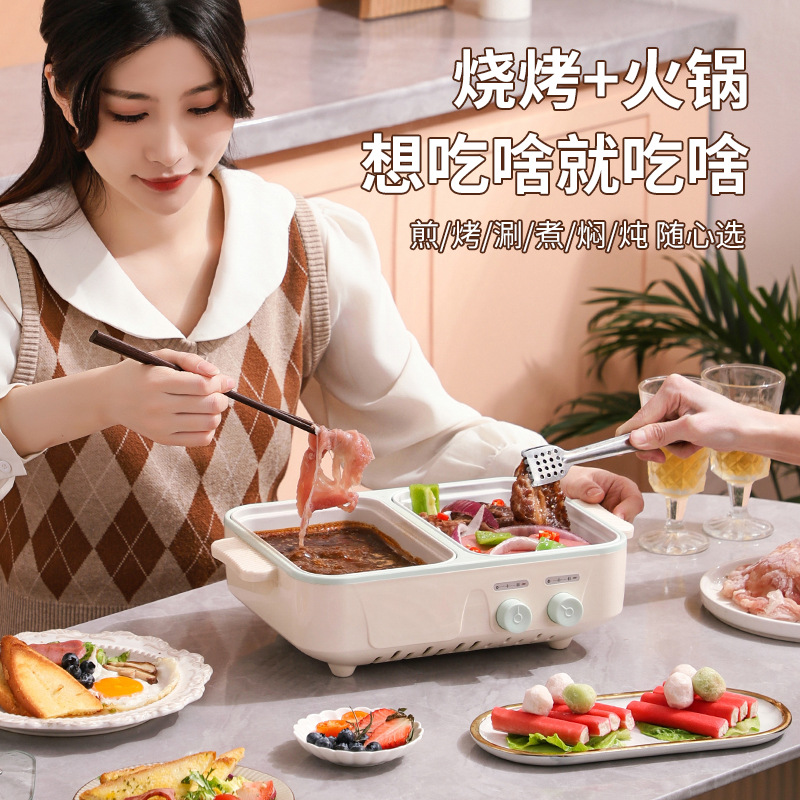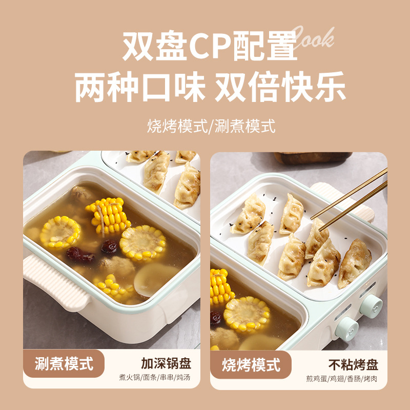 电煮锅1-2人家用多功能蒸煮一体锅学生宿舍小电锅烤盘电火锅跨境