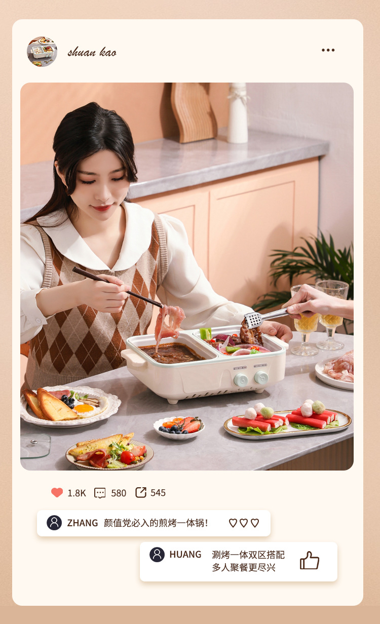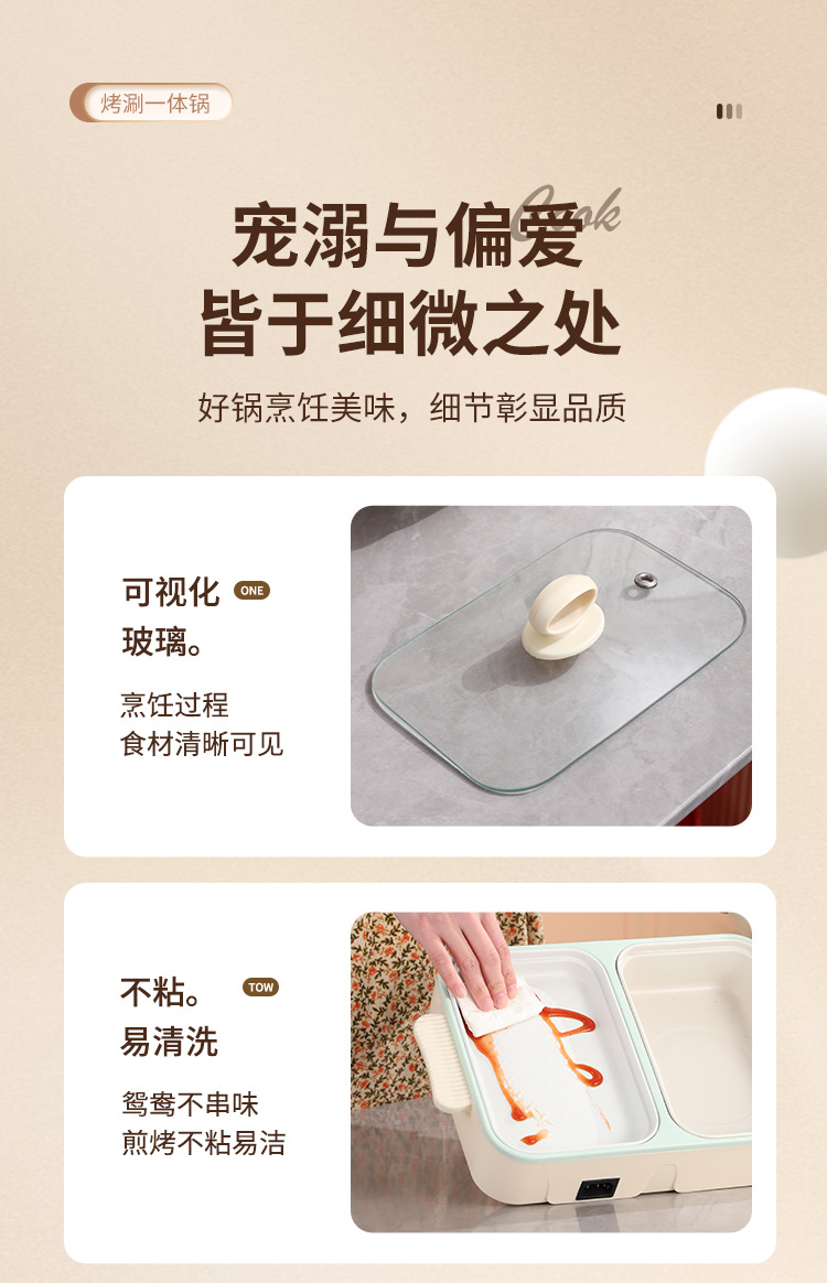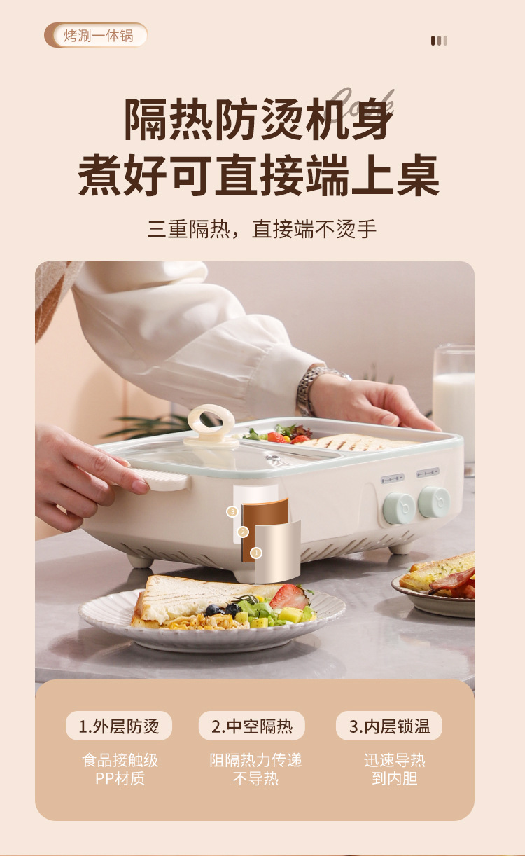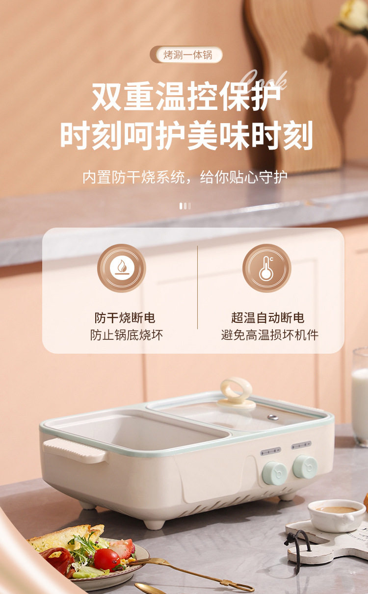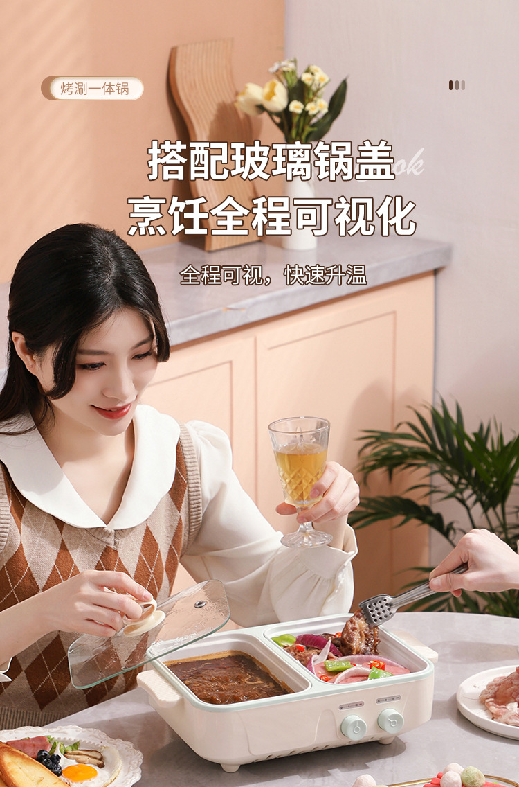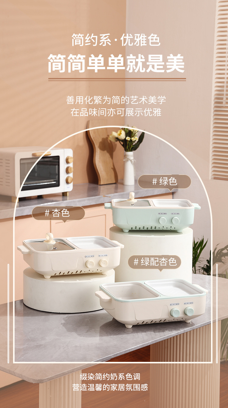 电煮锅1-2人家用多功能蒸煮一体锅学生宿舍小电锅烤盘电火锅跨境