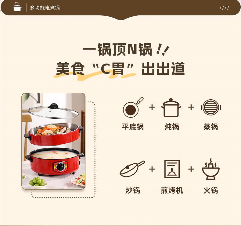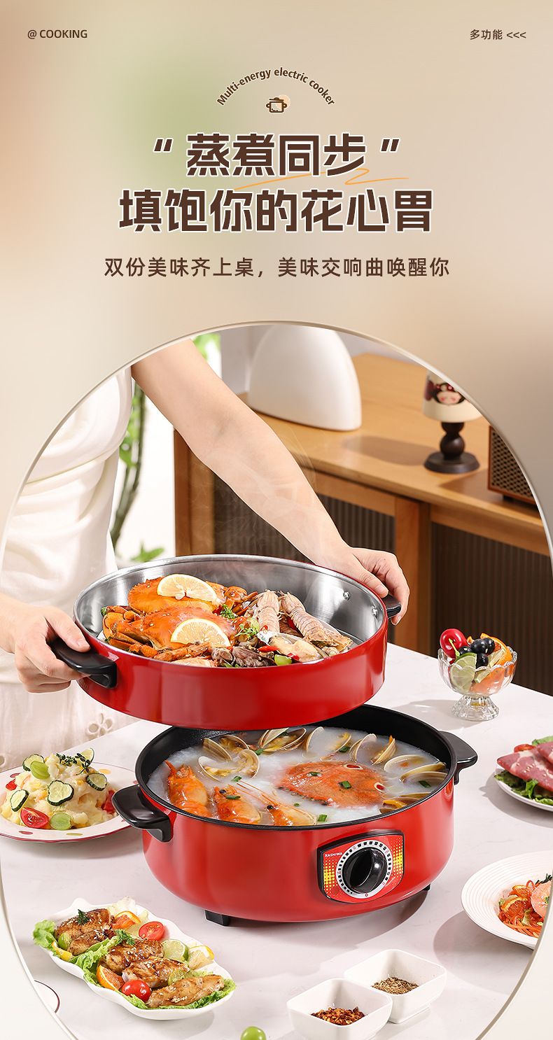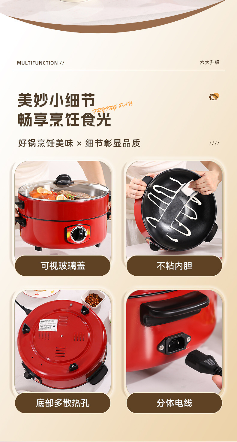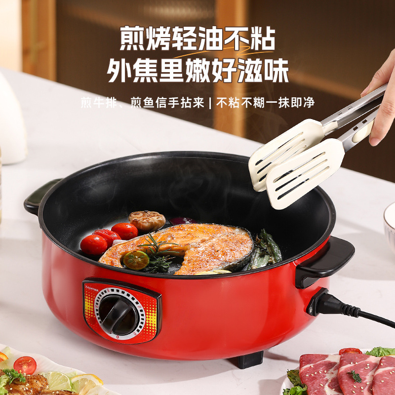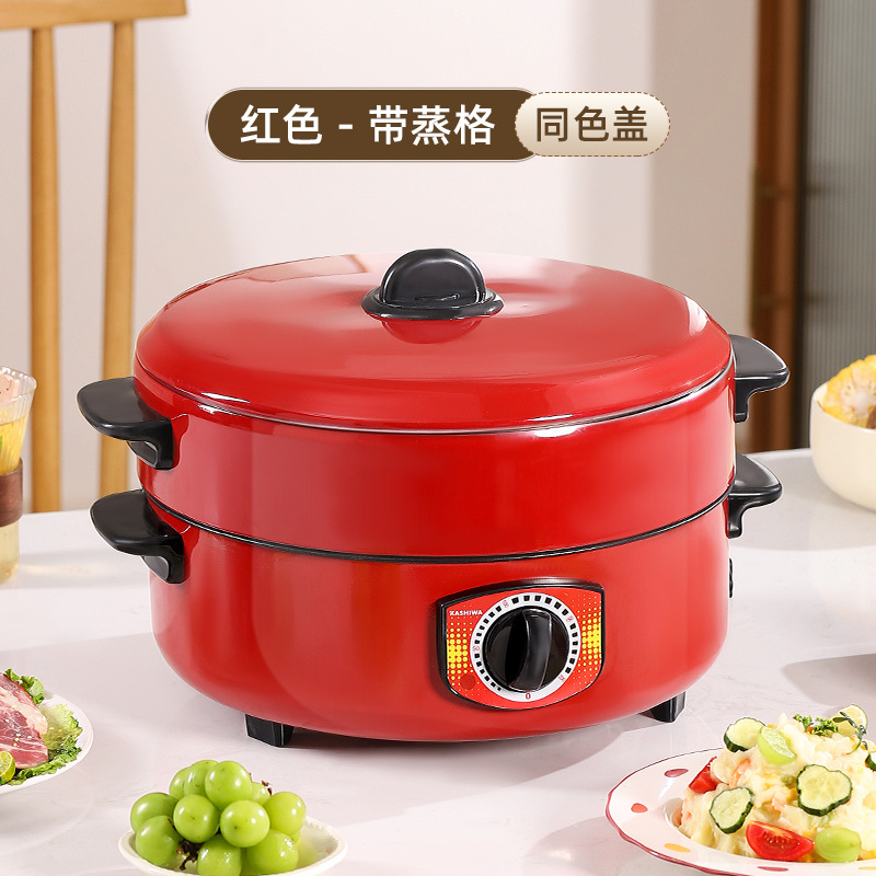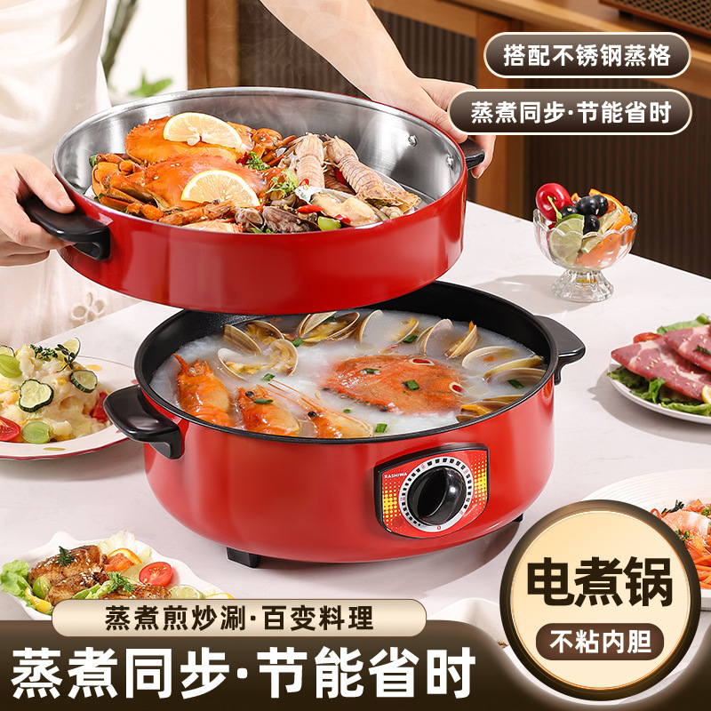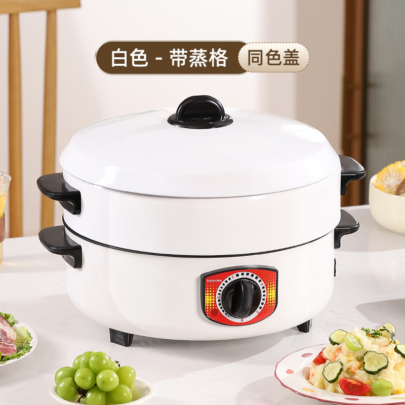 电煮锅多功能宿舍学生不粘锅家用蒸锅电火锅带蒸格蒸煮一体锅批发