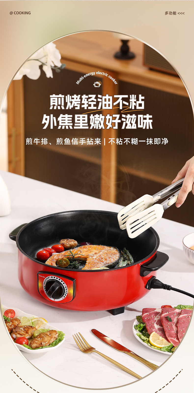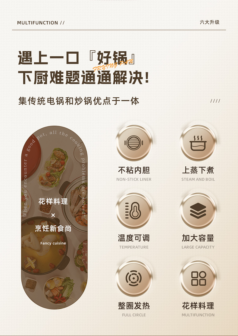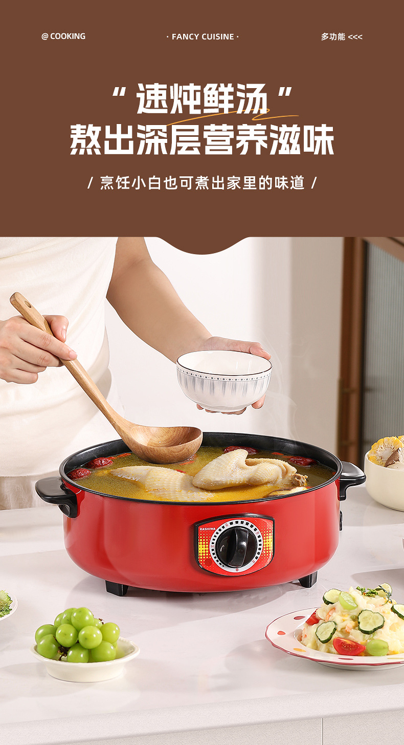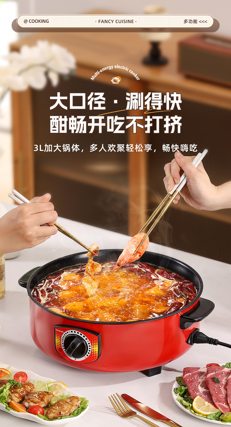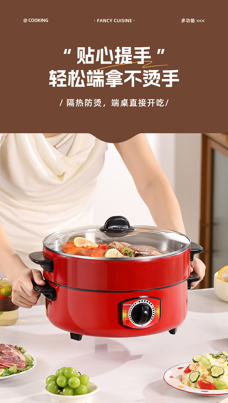 电煮锅多功能宿舍学生不粘锅家用蒸锅电火锅带蒸格蒸煮一体锅批发